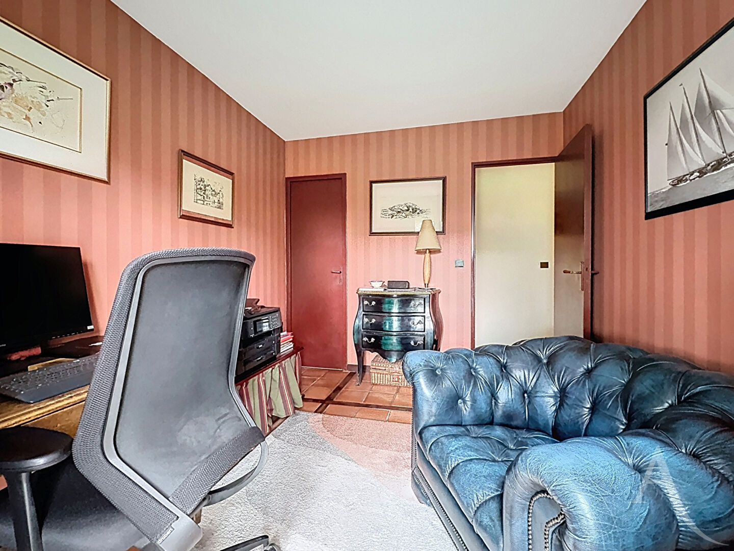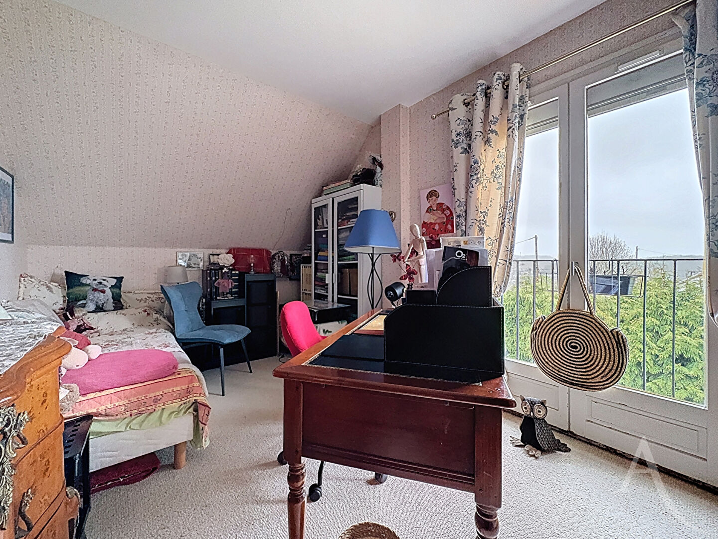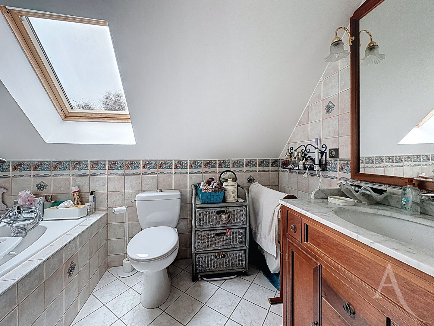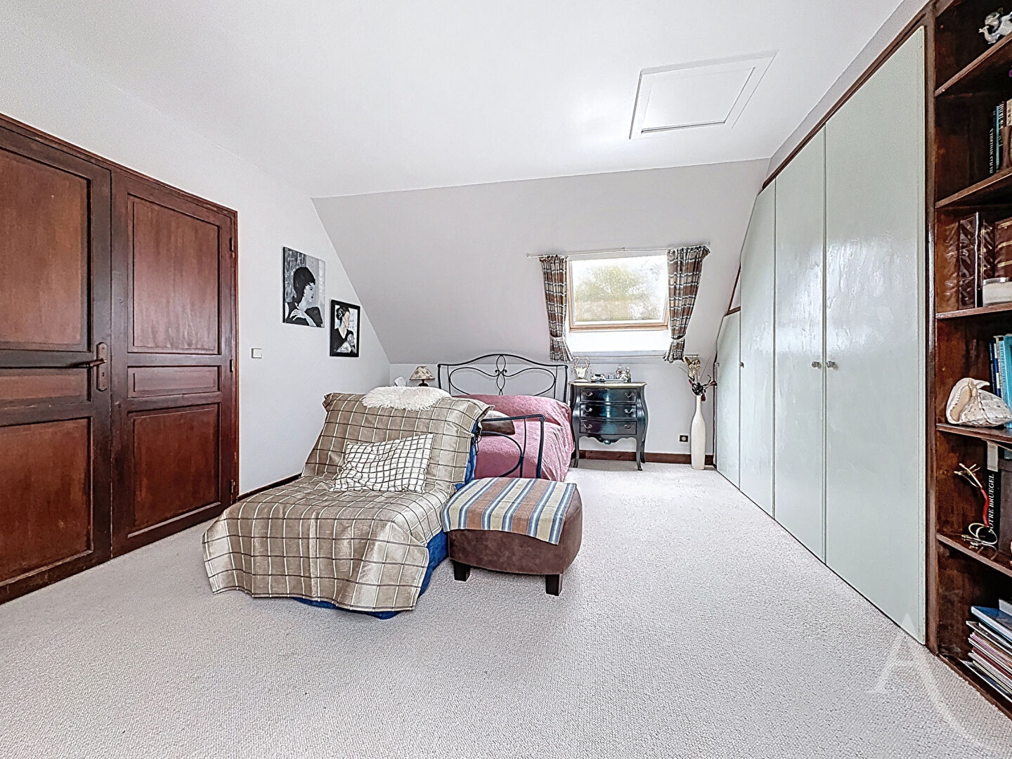 À l'étage, un palier distribue deux chambres, dont une avec dressing et une autre avec de nombreux rangements. Une salle de bains avec WC est également présente. Possibilité d'aménager une 4e chambre selon vos besoins.