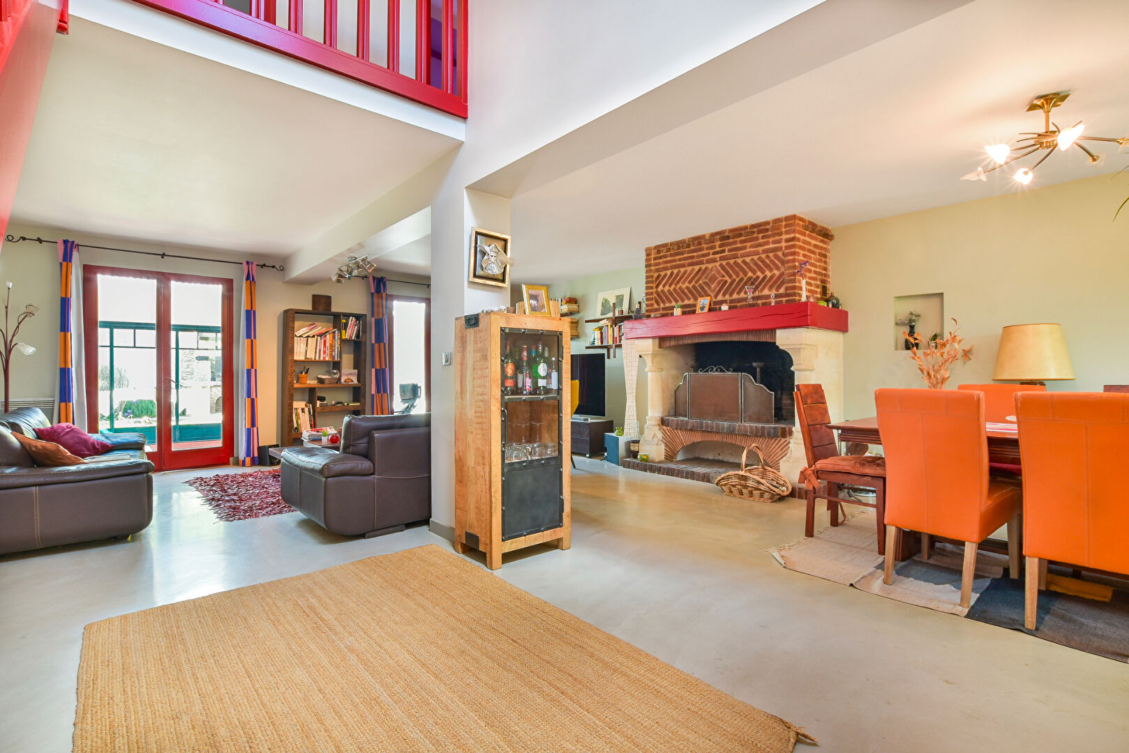 Pour commencer la visite, une entrée en toit cathédrale vous accueillera avec sa grande pièce de vie de 50m² accompagnée de sa cheminée pour le côté cocooning.