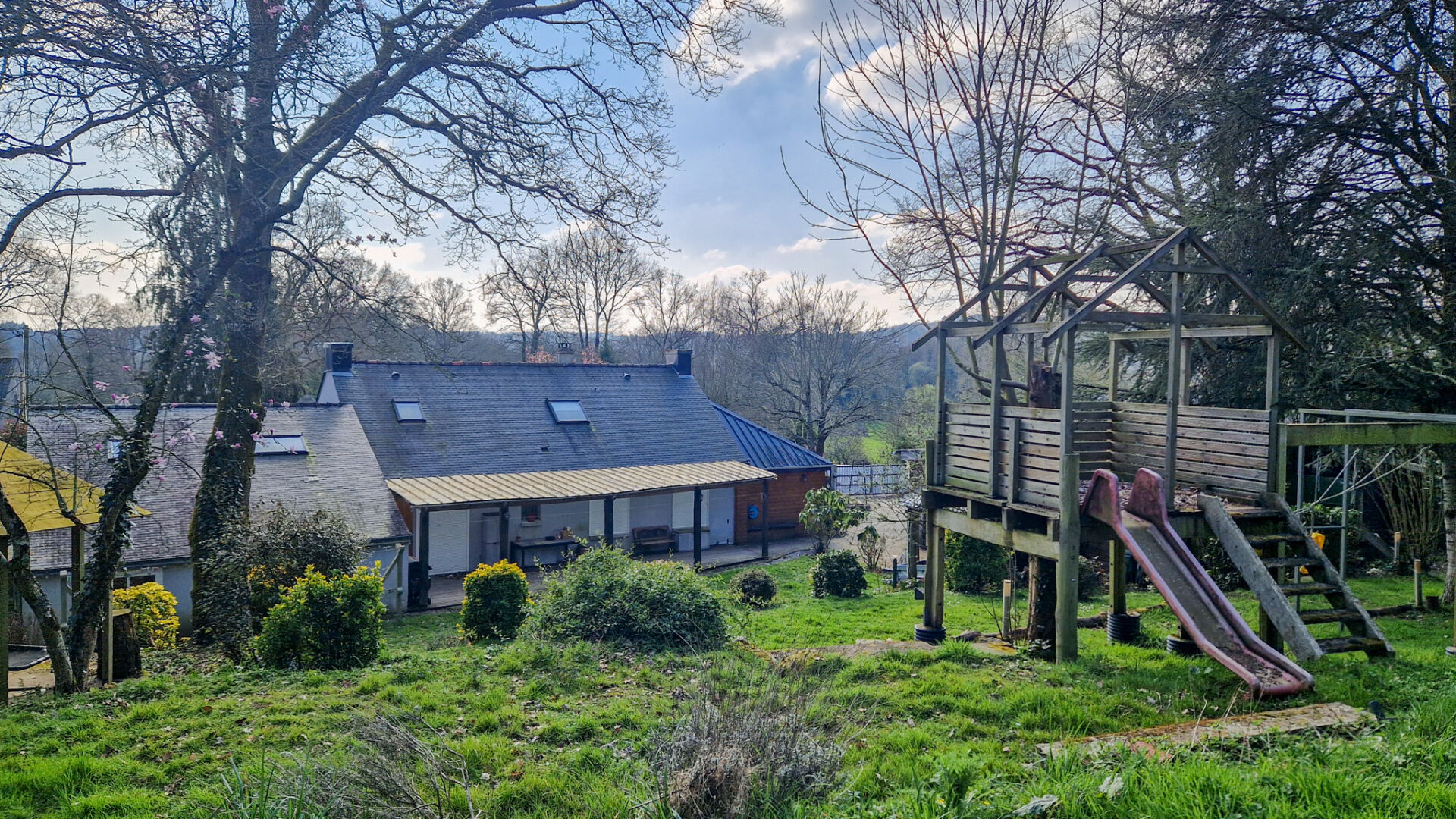 Maison lumineuse de 170 m2 (151 m2 habitable) située dans le bourg de Guillac, école, commerces et canal à pied. Au rez-de-chaussée : une belle pièce de vie lumineuse, une cuisine aménagée et équipée, une suite parentale de 24 m2, une grande chambre de 19 m2 (ou facilement modifiable en 2 chambres), une salle de bain, un wc et une buanderie. A l'étage : deux grandes chambres, une mezzanine, une salle de jeux, une salle d'eau et un wc. A l'extérieur : deux grandes terrasses donnant sur un très beau jardin paysagé clos de 2600 m2 et avec de nombreux aménagements. En bonus une annexe de 100 m2 avec un grand carport (+90m²2, un wc et internet. Assainissement par tout à l'égout.
