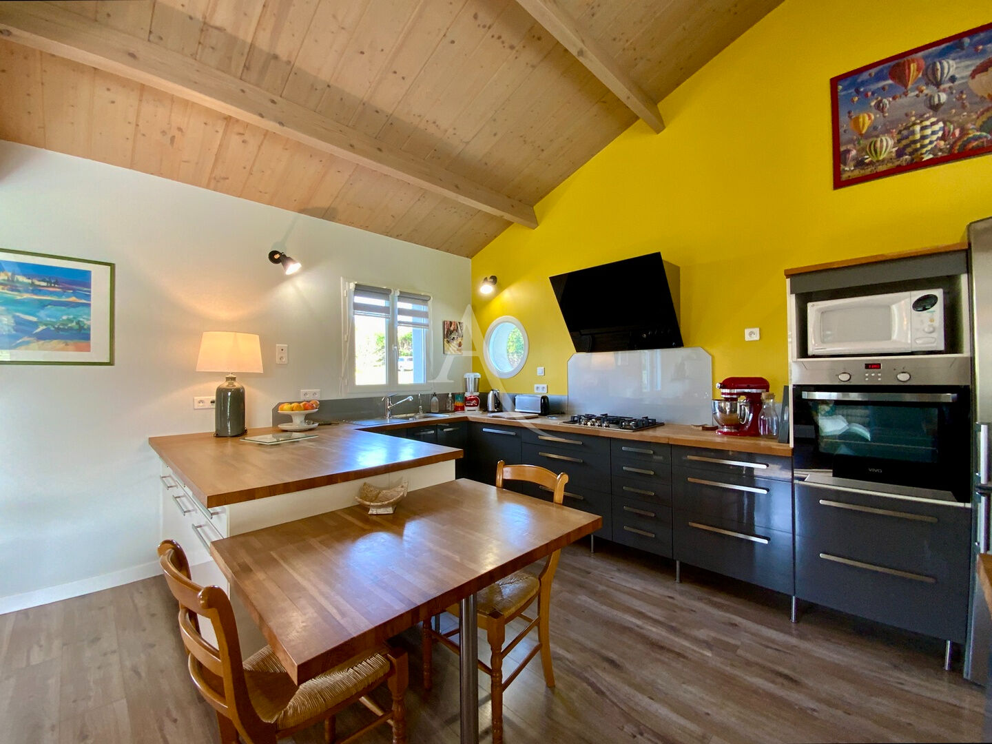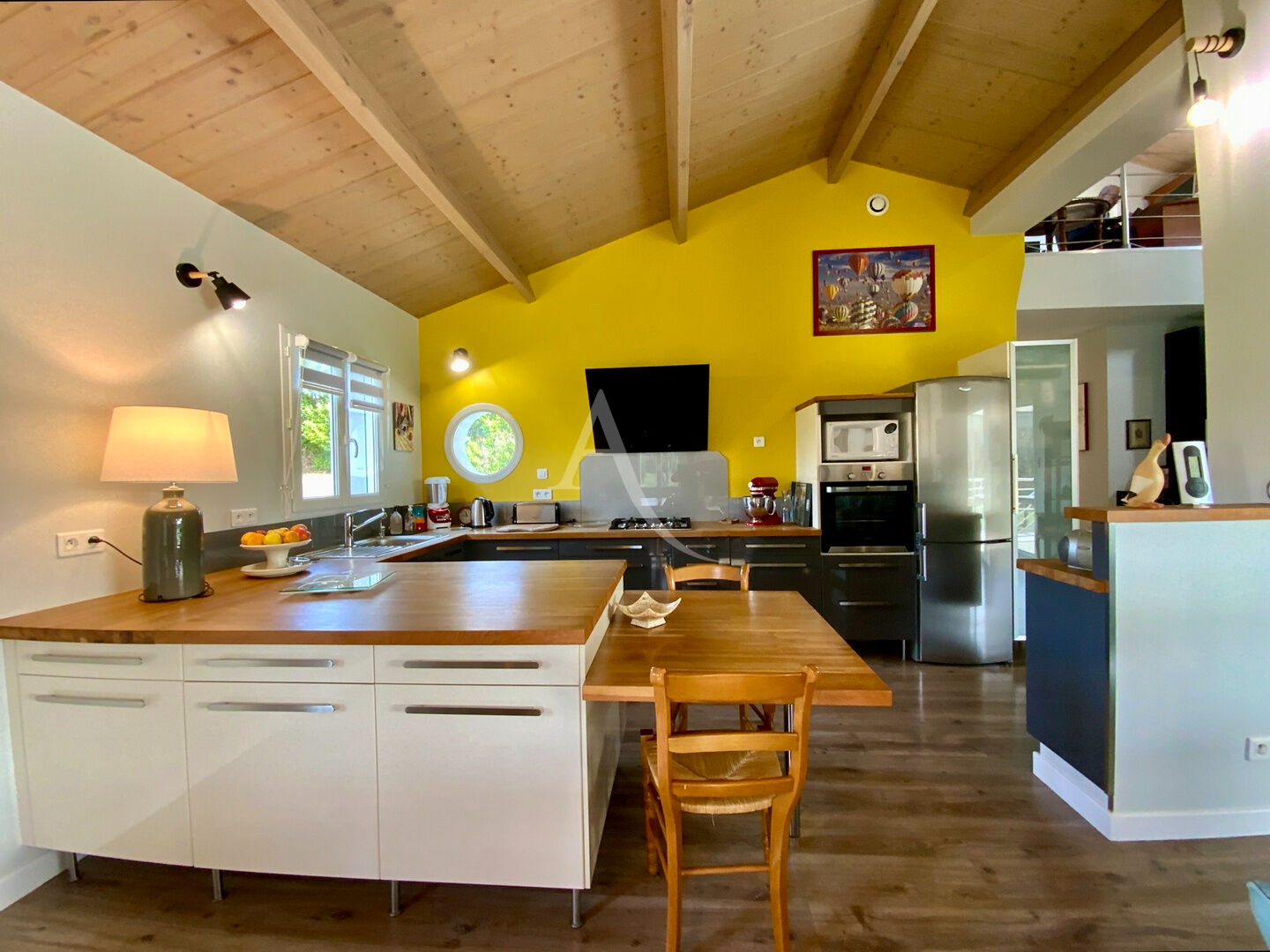 Découvrez cette maison d'architecte, familiale et lumineuse, offrant une spacieuse vie de plain-pied (2 chambres avec dressing et rangements, salle d'eau, wc), une chaleureuse pièce de vie avec poêle à bois et cuisine de qualité ouverte. Espace bibliothèque, bureau sur mezzanine, une chambre avec salle d'eau et wc à l'étage.