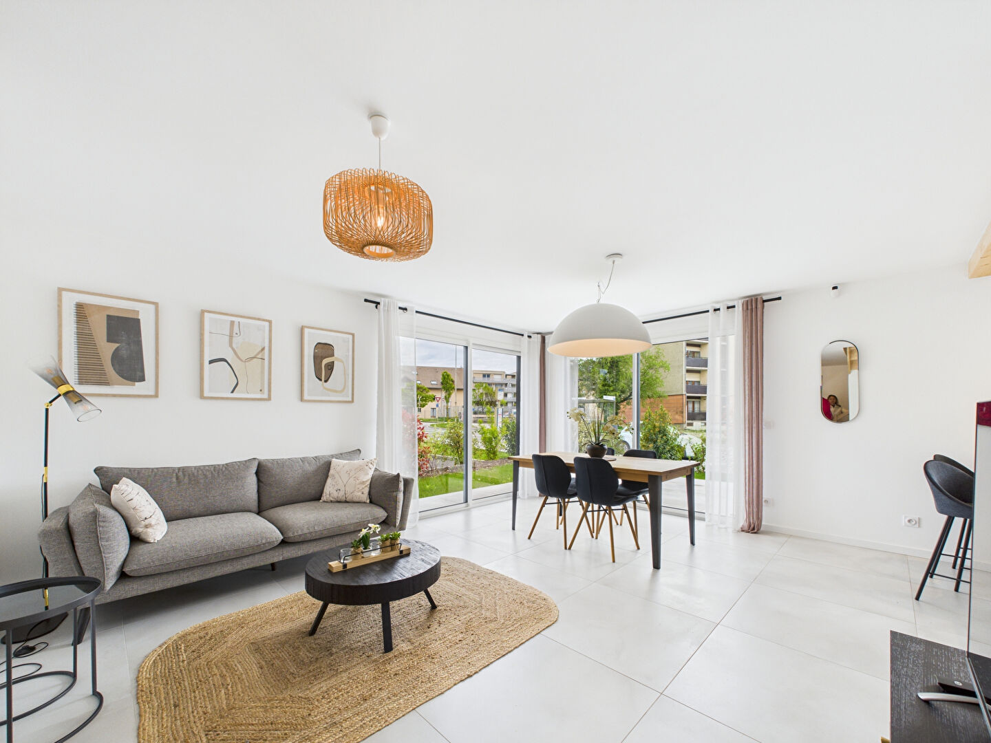- Une pièce de vie lumineuse, ouverte sur la terrasse et le jardin, idéale pour les beaux jours.