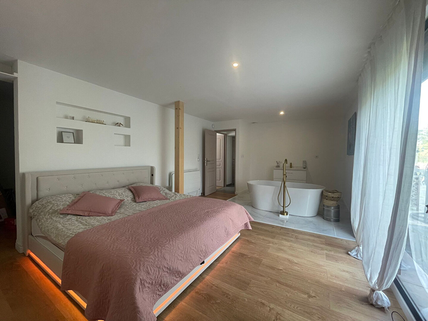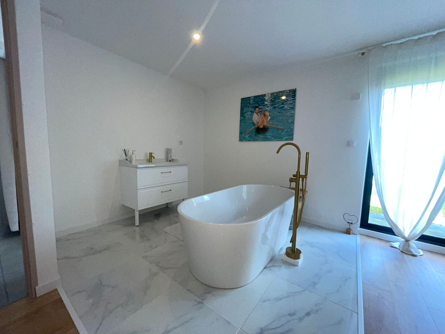 Il se compose au rez-de-chaussée d'une entrée donnant sur un vaste et lumineux séjour avec cuisine ouverte, aménagée et équipée, d'une suite parentale avec salle de bains privative et dressing, d'une deuxième chambre, d'un dressing supplémentaire avec buanderie attenante, ainsi que d'une salle d'eau avec douche à l'italienne.