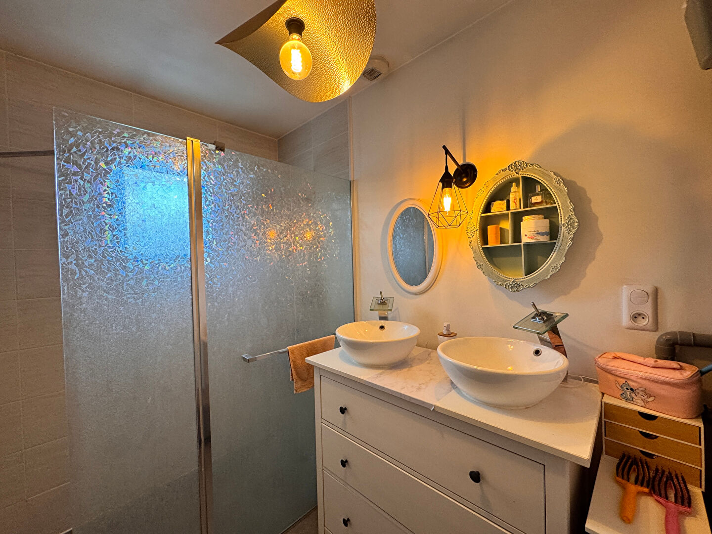 Au rez-de-chaussée, vous découvrirez une entrée ouverte sur un vaste et lumineux séjour avec cuisine aménagée et équipée, une suite parentale avec salle de bains privative et dressing, une seconde chambre, un dressing supplémentaire pouvant servir de chambre, ainsi qu'une salle d'eau avec douche à l'italienne.