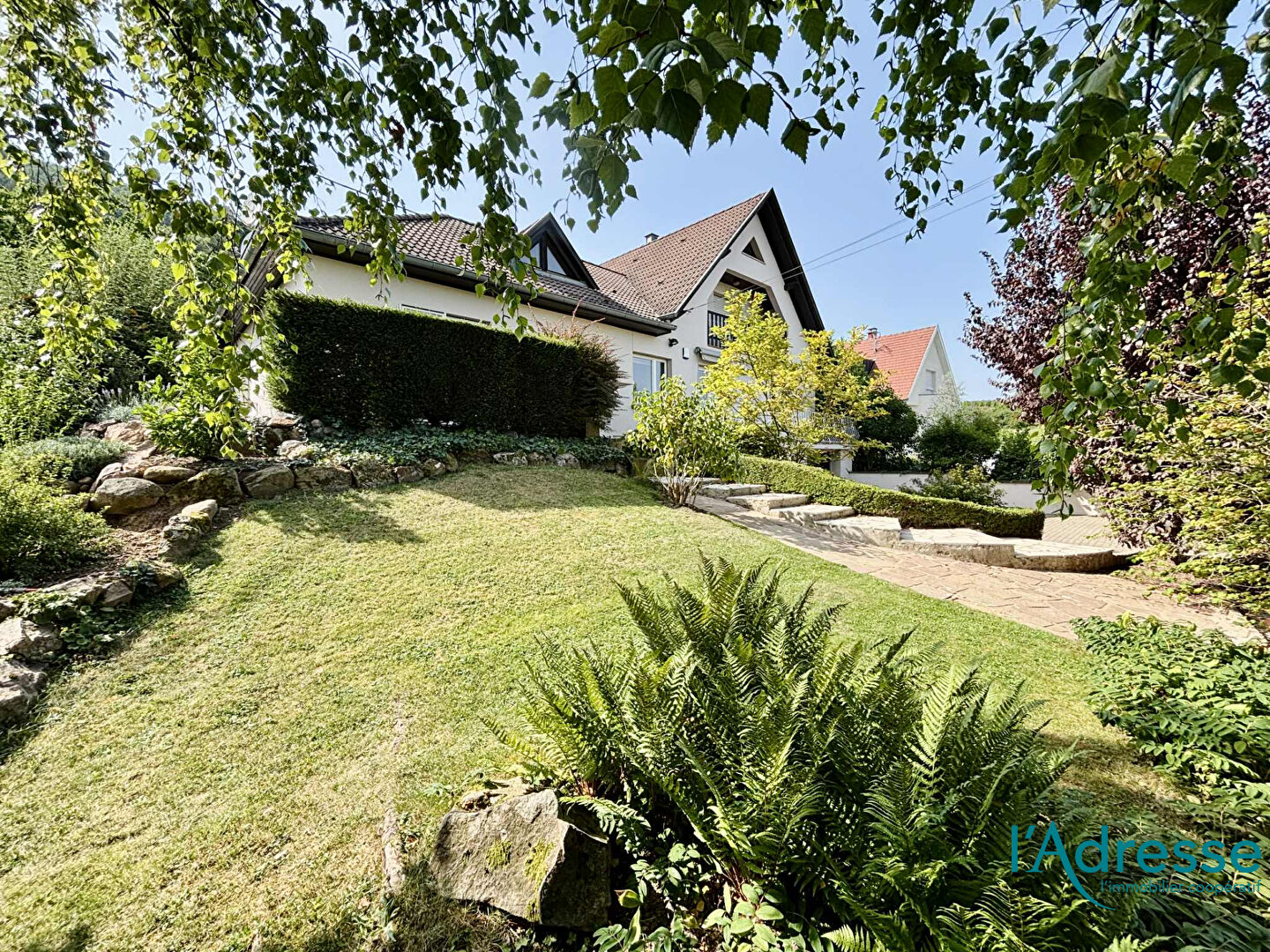 L'Agence l'Adresse Ingersheim vous propose à la vente cette somptueuse propriété avec piscine sur 9.53 ares de terrain arboré et clos, avec vues exceptionnelles sur le vignoble et les Trois-Châteaux.