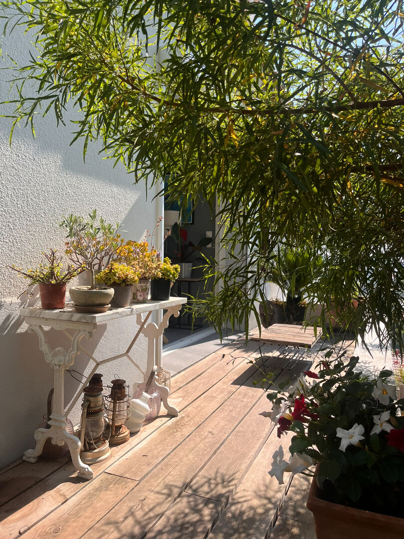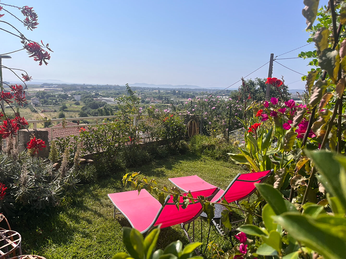 En rez-de-jardin un appartement de type 3 parfaitement aménagé avec une belle pièce à vivre avec cuisine meublée et équipée, deux chambres, salle d'eau et wc, pour une location saisonnière, ou annuelle, ou pour y loger de jeunes adultes qui souhaitent un peu d'indépendance ! Plusieurs terrasses sont dédiées à ce lieu avec une vue dégagée incroyable sur les îles d'Or.