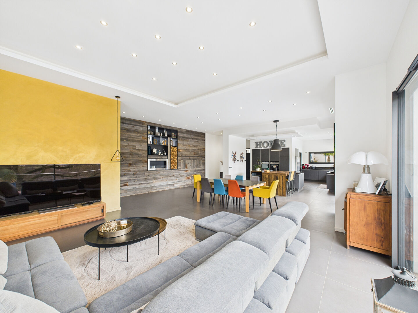 La pièce de vie, développant plus de 110 m², bénéficie d'une hauteur sous plafond remarquable de 3,5 mètres et d'une luminosité omniprésente. Les espaces s'ouvrent naturellement les uns sur les autres dans une harmonie parfaite, offrant un cadre idéal pour recevoir.