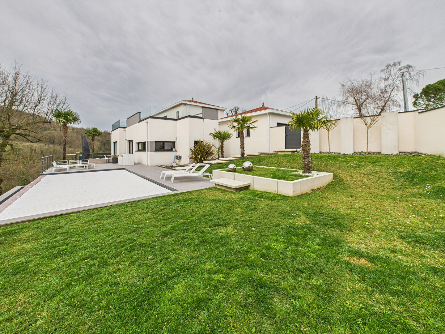 Implantée sur un terrain paysagé de 1 783 m², la propriété dispose d'une piscine chauffée à débordement (10 x 4,5 m) parfaitement intégrée dans son environnement, offrant un cadre de vie privilégié.