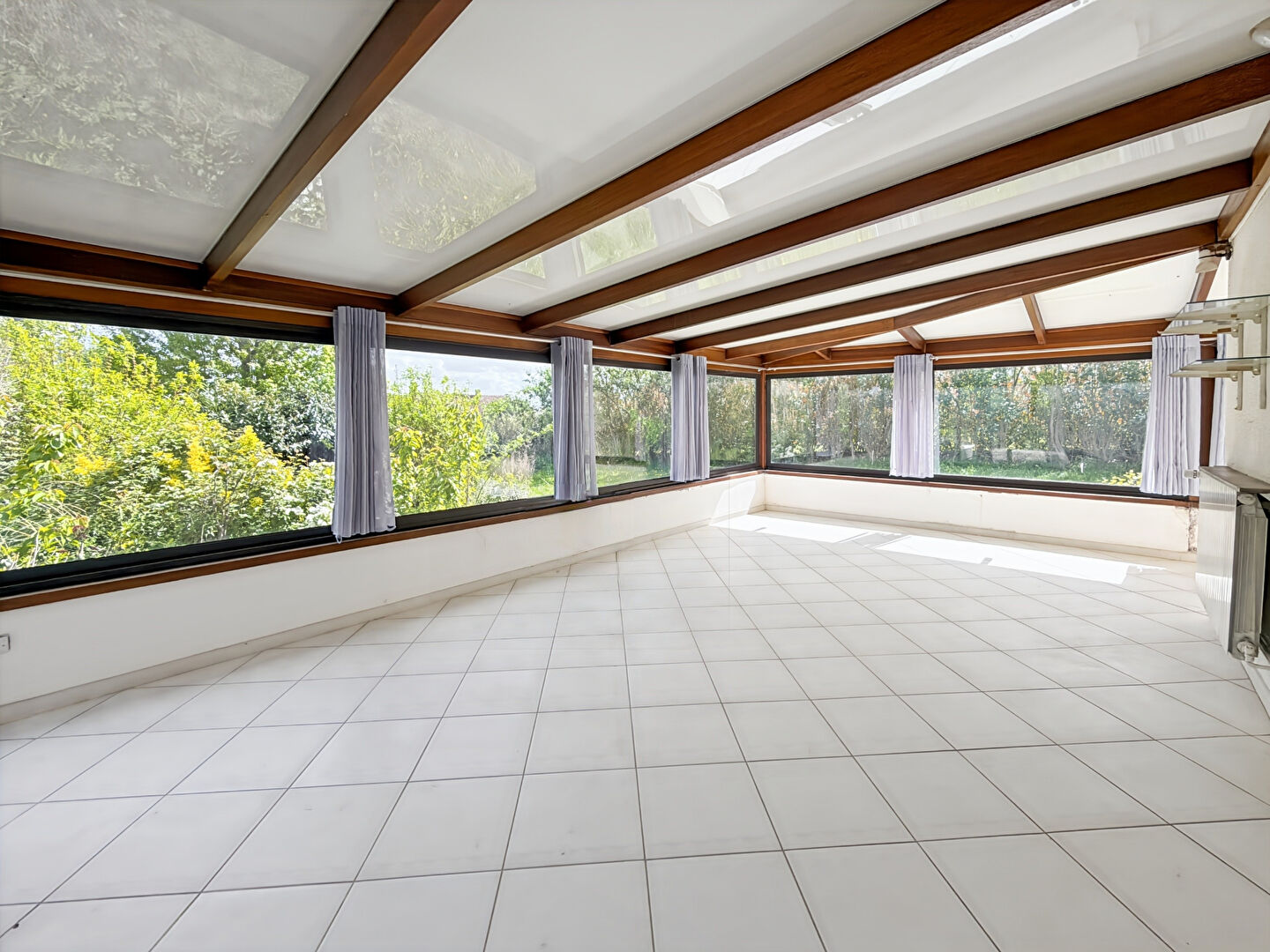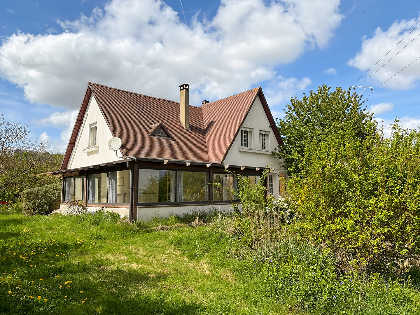 Jolie construction traditionnelle élevée sur un terrain de 1 386m² comprenant au rez de chaussée un séjour avec cheminée ouvrant sur une belle véranda de 30m².