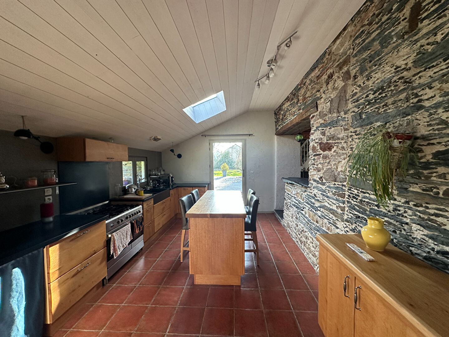 Laissez-vous séduire par cette maison entièrement rénovée avec goût, offrant des prestations de qualité et des volumes généreux, le tout sur un parc clos arboré de plus d'un hectare, un atout exceptionnel et très recherché. La maison s'ouvre sur un vaste salon séjour de 60 m², baigné de lumière, prolongé par une cuisine sur-mesure, aménagée et entièrement équipée. L'ensemble donne directement accès à une agréable terrasse en bois, idéale pour profiter du cadre verdoyant et paisible. Côté nuit, vous trouverez trois chambres, une salle d'eau, ainsi qu'une arrière-cuisine et une buanderie fonctionnelles. Les combles offrent un beau potentiel pour la création d'une quatrième chambre selon vos besoins. À l'extérieur, le terrain dispose d'une dépendance, d'un hangar, ainsi que d'un puits, renforçant le potentiel et l'autonomie de la propriété. Confort moderne assuré grâce au chauffage au sol par géothermie, la maison est reliée au tout-à-l'égout, et à une proximité de l'axe Nantes Rennes et des commodités, alliant calme et accessibilité. Maison très lumineuse, environnement privilégié, terrain exceptionnel : un bien rare, offrant espace, confort et qualité de vie.