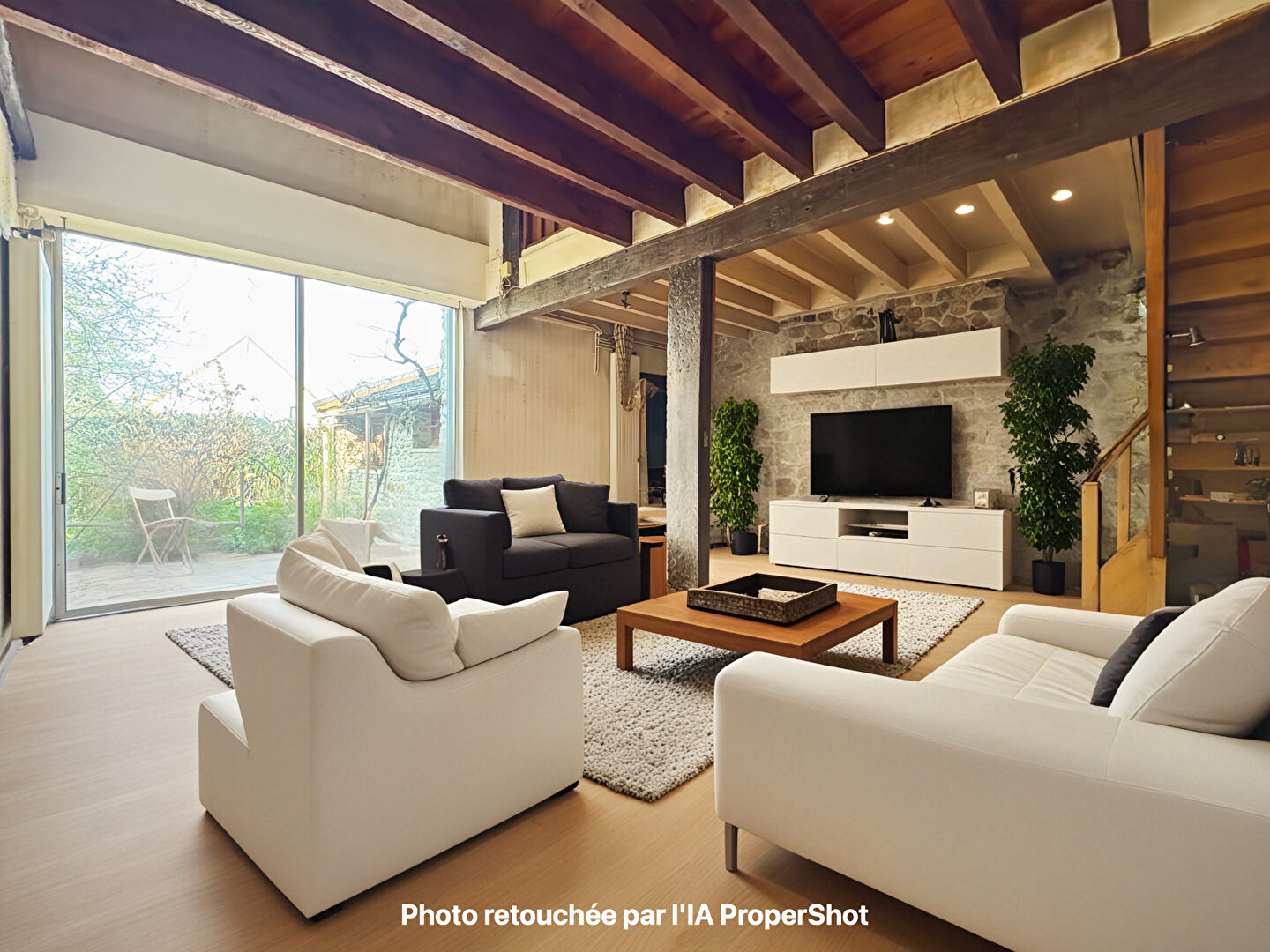 Dès l'entrée, spacieuse (23m²) et adaptée pour une profession libérale, vous découvrirez un séjour de 30m² semi cathédrale avec cheminée, donnant accès à une cuisine indépendante ainsi qu'à une salle de bains avec WC séparés.