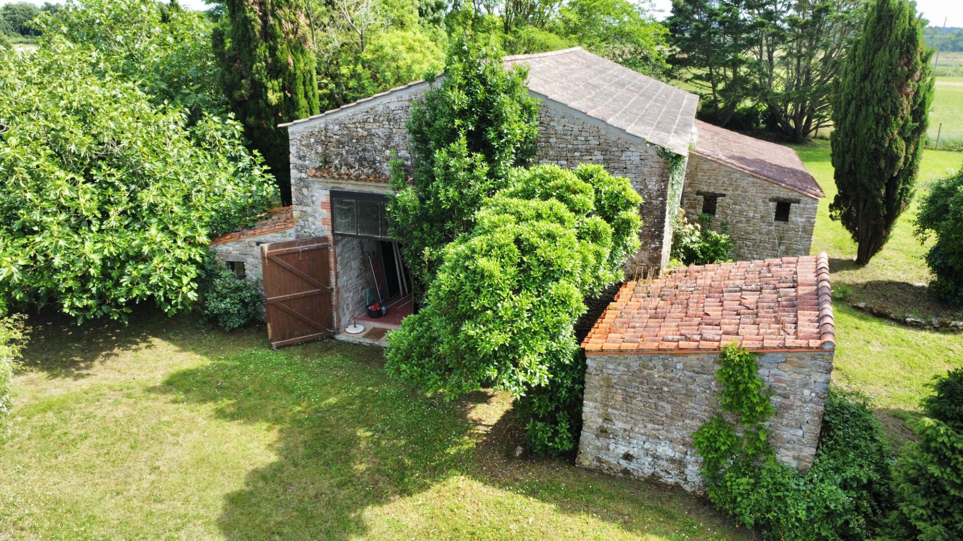 Situé au bord d'un espace Naturel protégé, Vaste Ensemble Immobilier , intégralement en pierre, composée d'une longère avec expo ensoleillée et d'une 2nde bâtisse indépendante.