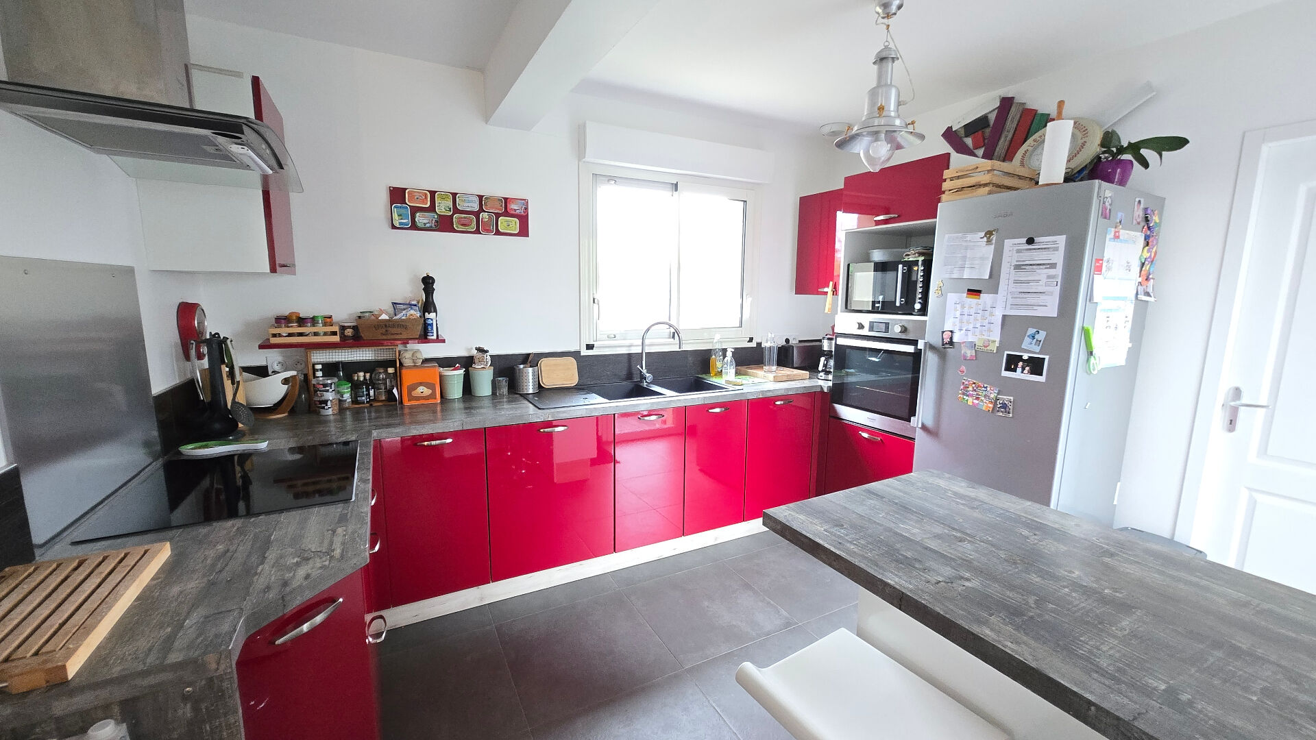 La cuisine ouverte, entièrement aménagée et équipée, s'ouvre directement sur la terrasse, idéale pour profiter des beuax jours. Un cellier vient complèter cet espace fonctionnel.