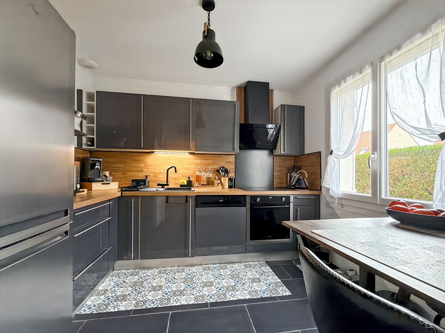 Dès l'entrée, vous profitez d'un espace généreux avec placard, menant à une cuisine moderne entièrement équipée, et à un séjour double exposé plein sud, baigné de lumière et ouvert sur le jardin.