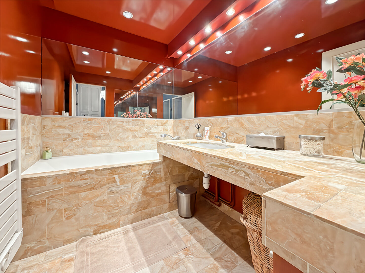 À l'étage, un palier avec rangements dessert quatre grandes chambres avec placard, un bureau, une salle de bains, une salle d'eau et un WC.