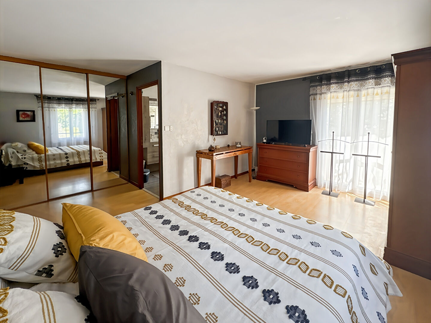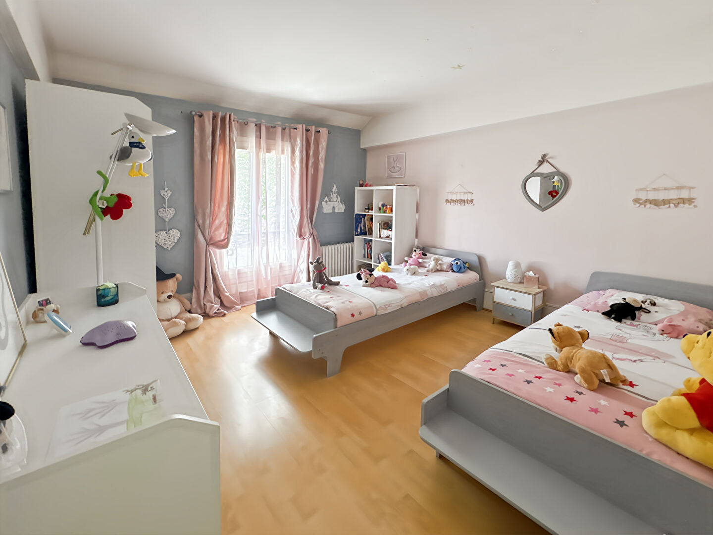 À l'étage, un dégagement dessert quatre belles chambres, dont une suite parentale avec sa salle d'eau privative, ainsi qu'une salle de bains avec WC.