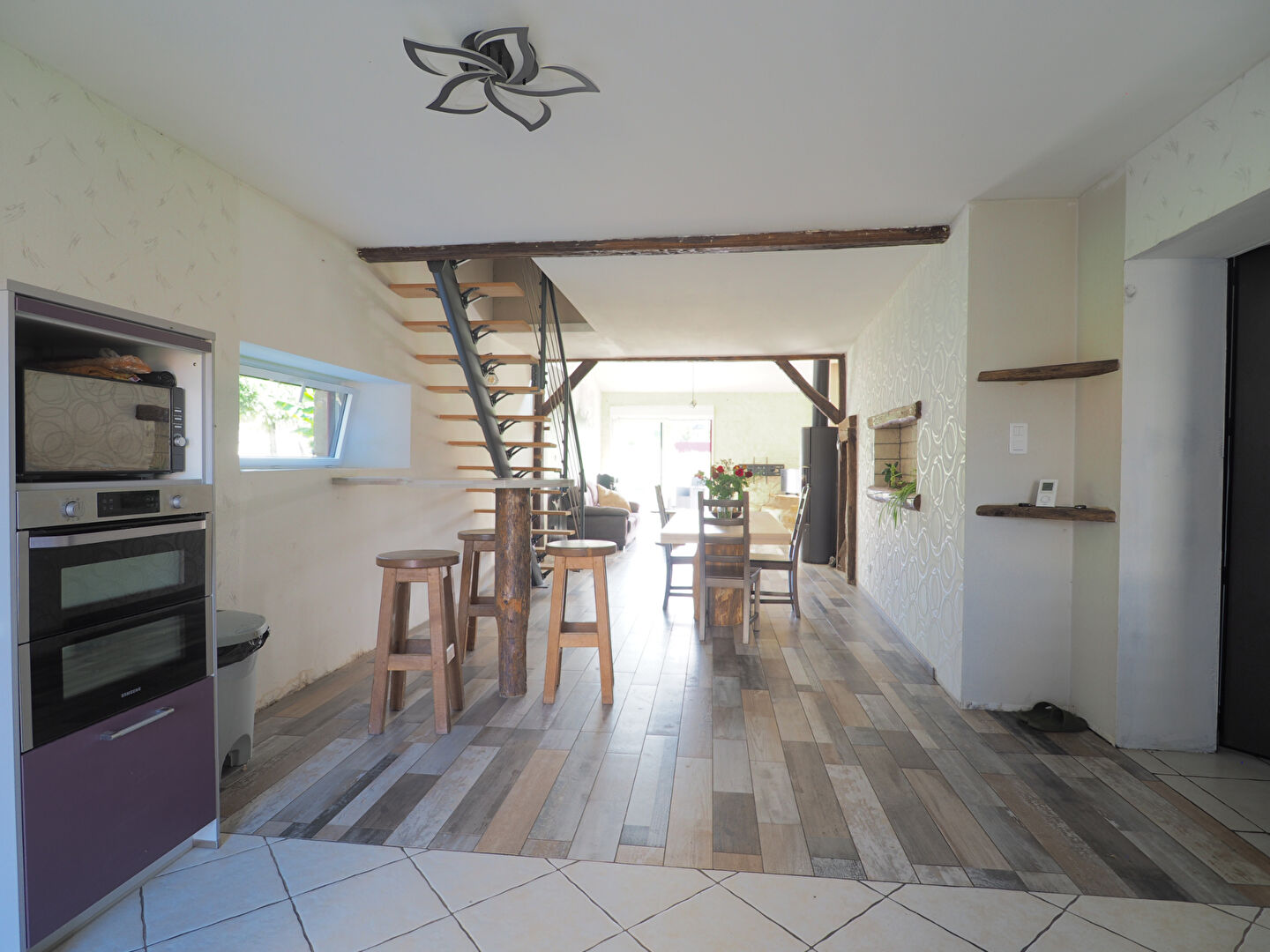 Poêle à bois central (économies de chauffage et ambiance chaleureuse).