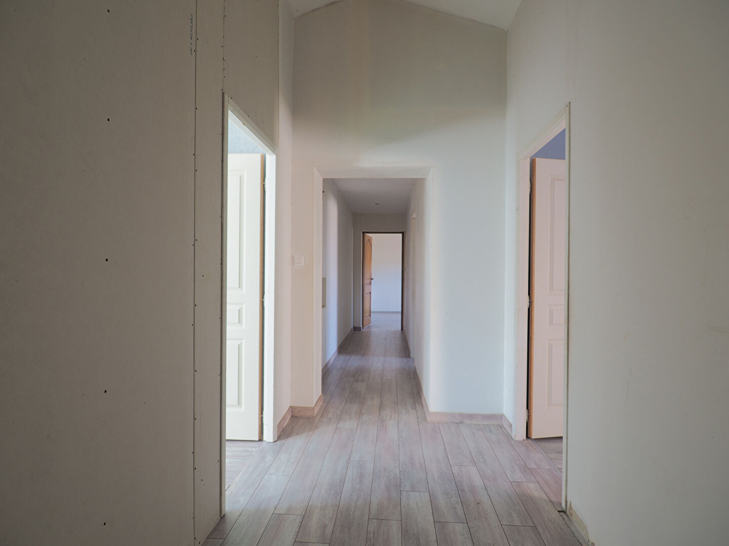 Premier étage : couloir desservant trois chambres supplémentaires, une suite parentale avec dressing et salle d'eau avec WC.