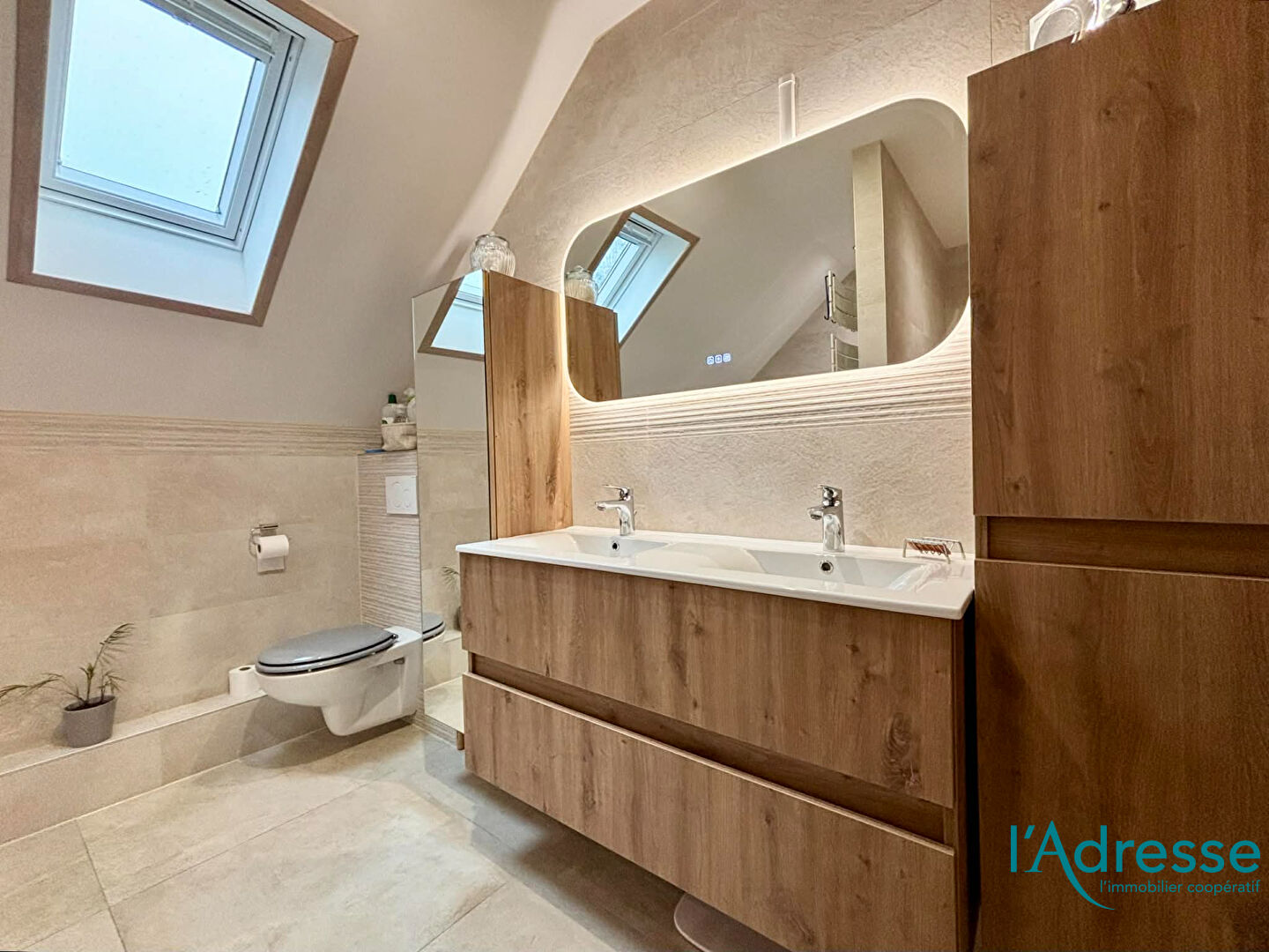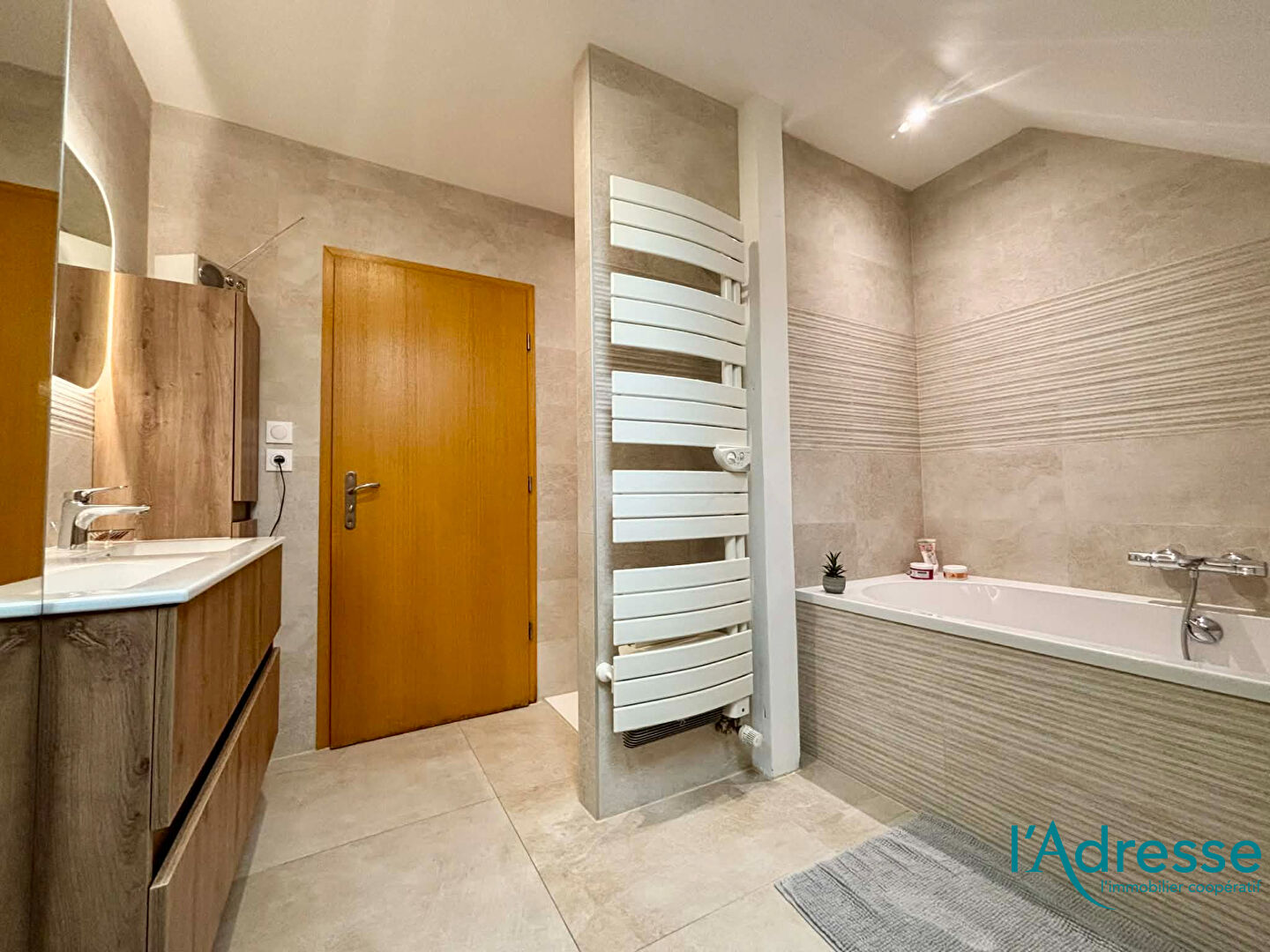 - Une salle de bains avec douche, baignoire et WC entièrement refaite en 2025.