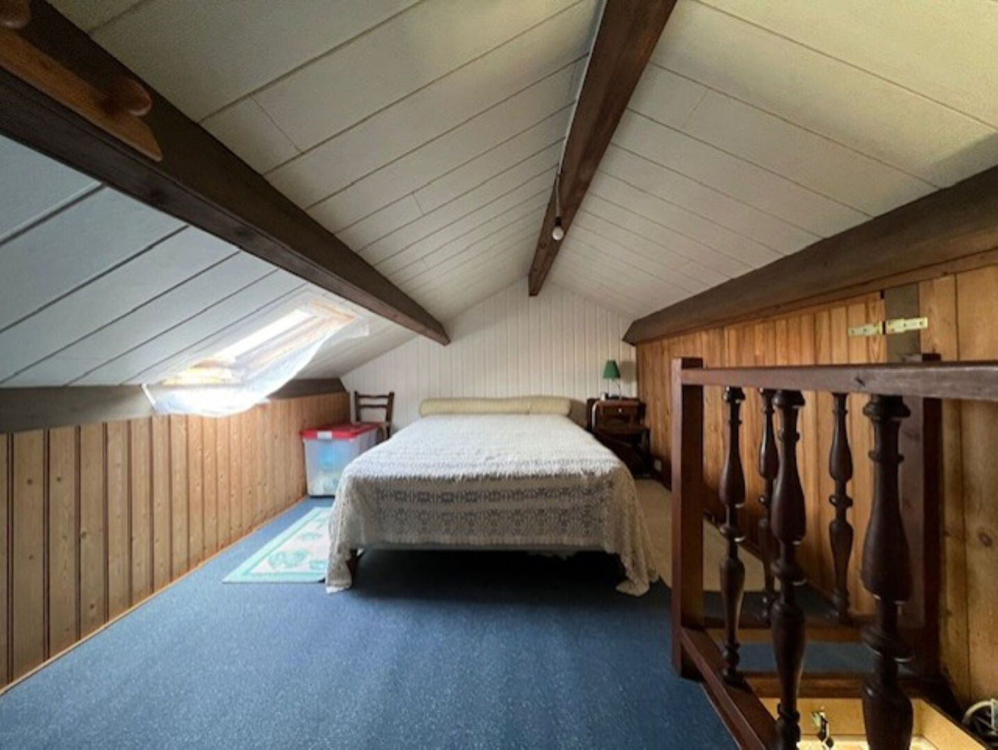 Décorée dans un style marin simple et soigné, elle comprend deux chambres de plain-pied dont une mezzanine qui inclut une troisième chambre, une pièce de vie conviviale, une cuisine, une salle d'eau et des WC séparés.