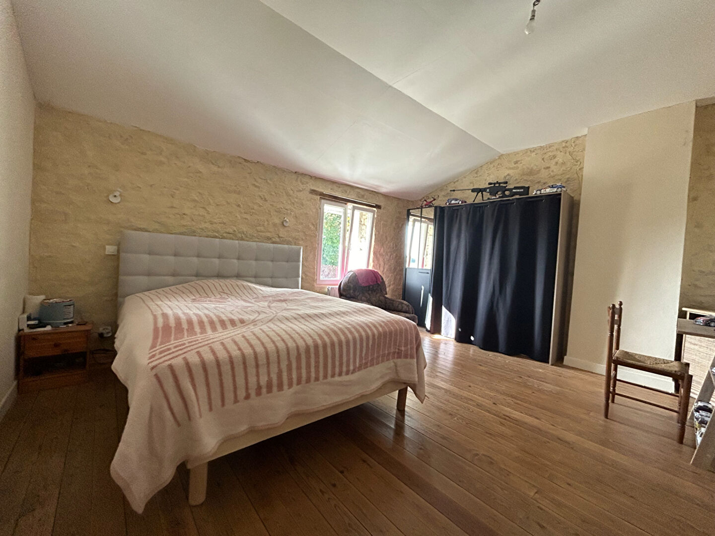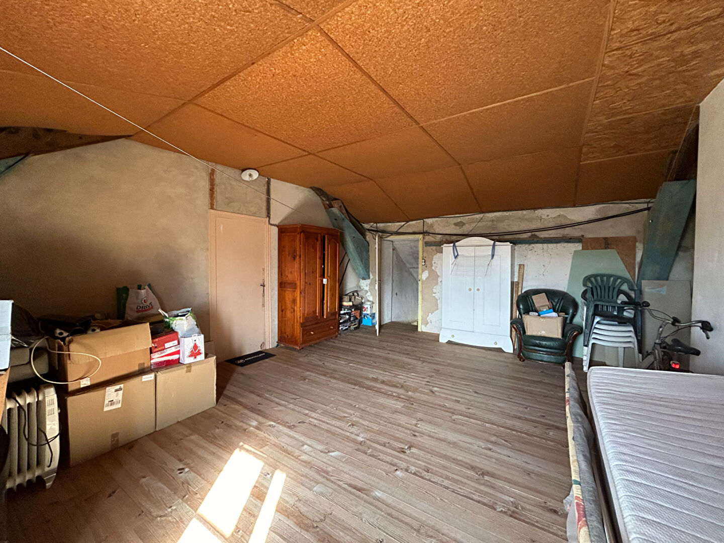 À l'étage, une chambre est déjà aménagée, et deux greniers restent à transformer selon vos besoins : chambres supplémentaires, bureau, salle de jeux, etc.