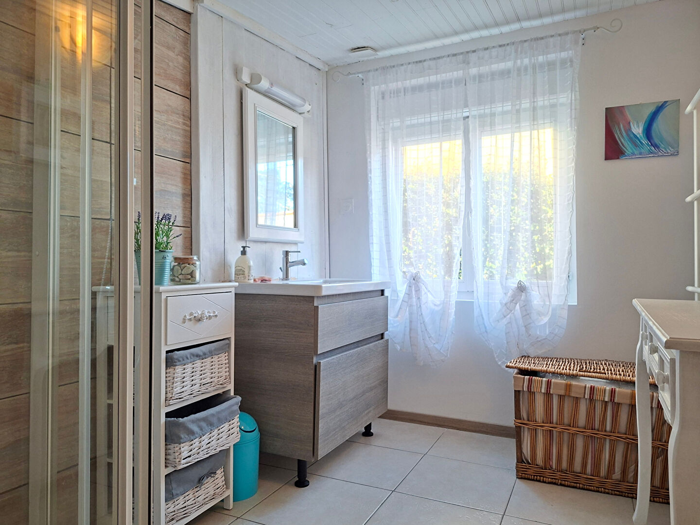Cette charmante maison de plain-pied, rénovée, composée d'une entrée, d'un séjour lumineux, d'une grande cuisine aménagée et équipée, de 3 belles chambres, d'une salle d'eau et wc séparés.