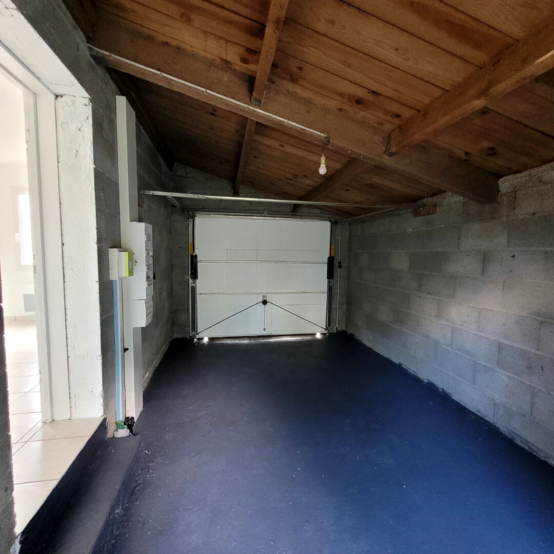 La maison est composée d'une spacieuse pièce de vie, de trois chambres avec placards, d'une salle d'eau et d'un WC. Le bien dispose également d'un garage attenant à la maison.