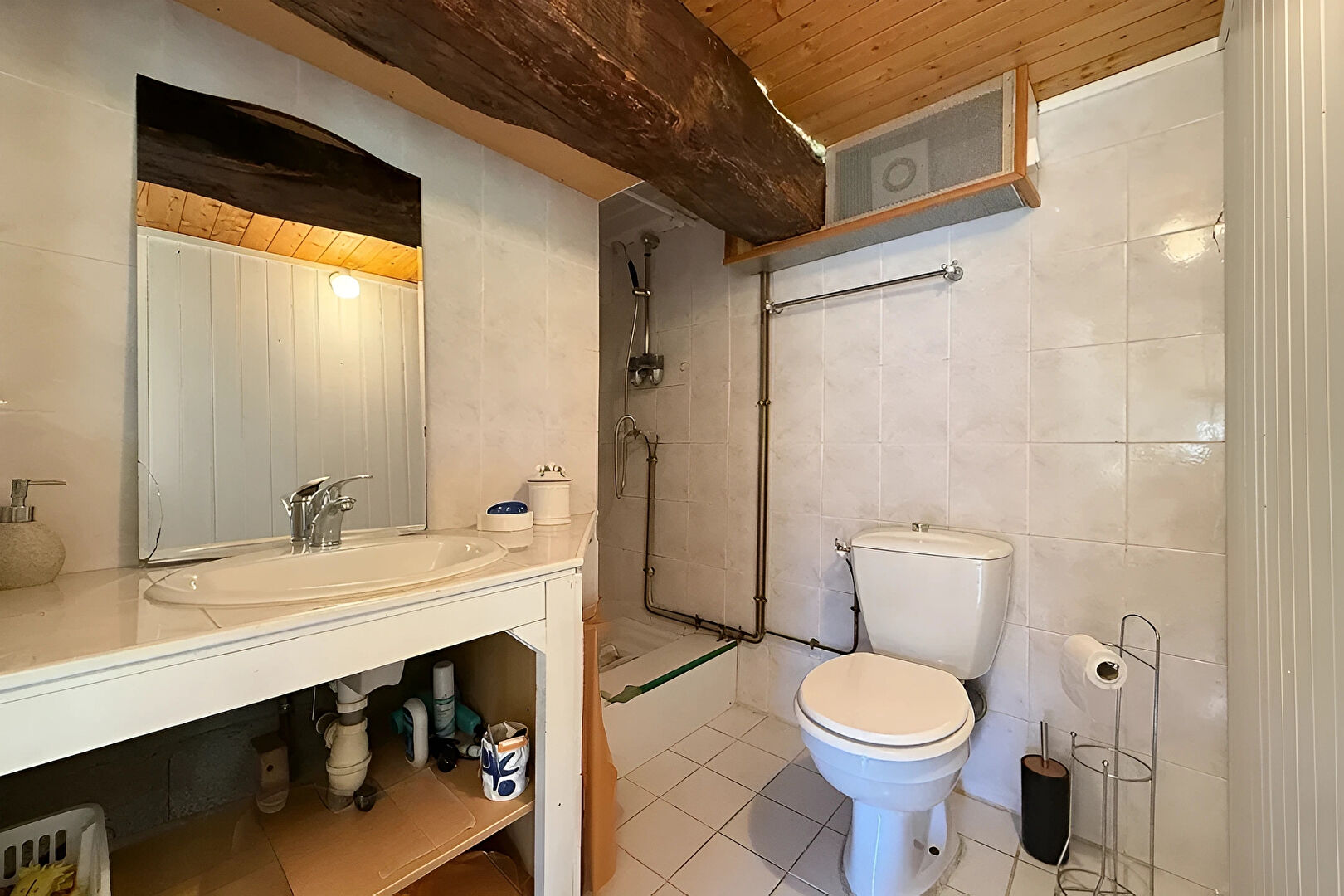 Les + : une cave voûtée en sous-sol d'environ 18m² et un préau de près de 50m², idéal pour stationner une voiture ou bricoler.