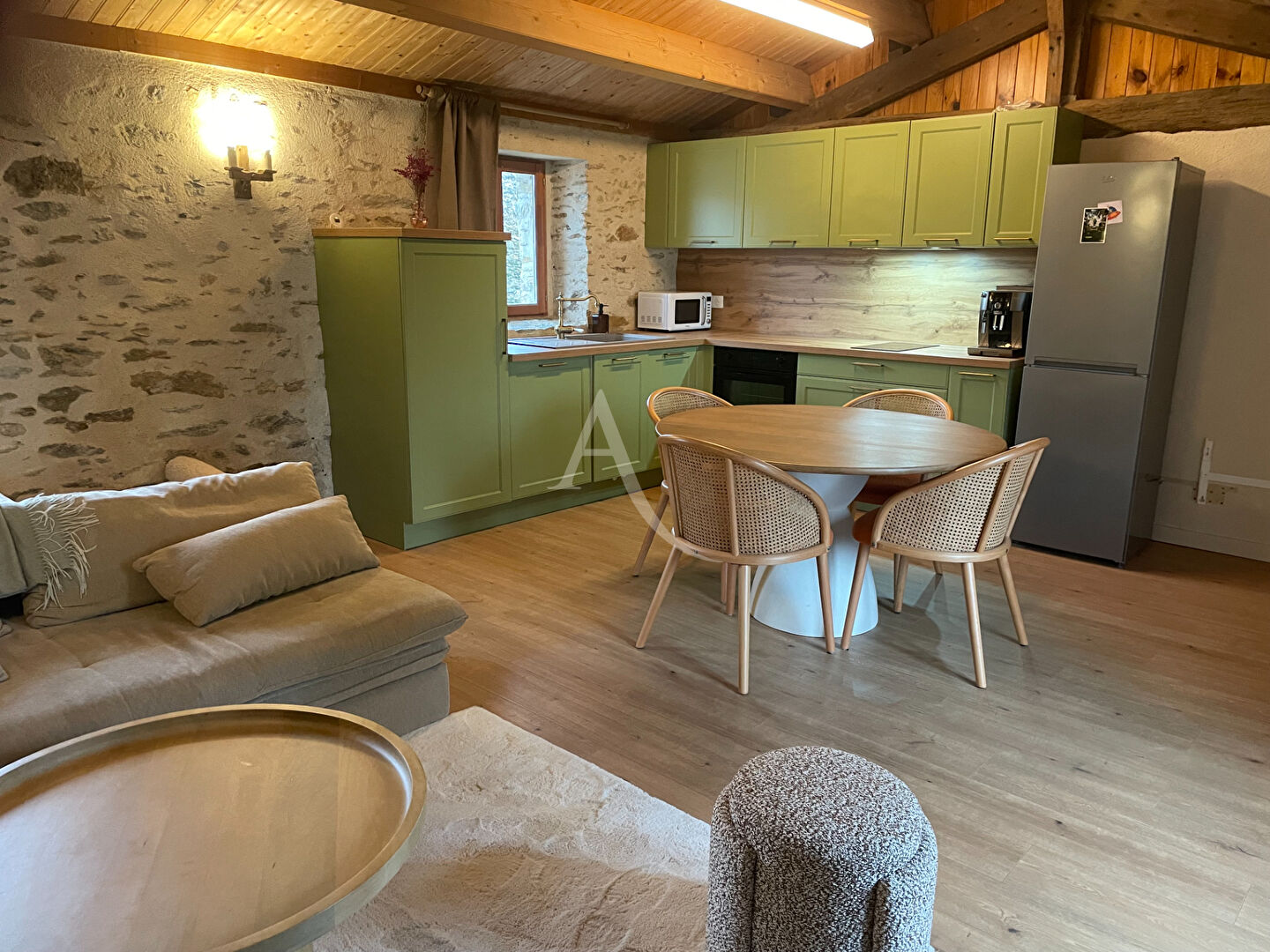 La Chaize Giraud, dans le quartier historique avec vue sur l'église classée, ravissante maison en pierre rénovée avec goût, elle se compose d'une pièce de vie avec une cuisine américaine, deux chambres, une salle d'eau avec WC, un atelier. Joli jardin sans vis-à-vis offrant de nombreuses possibilités (piscinable, extension). un atelier. Chauffage pompe à chaleur air/air. Libre à la vente au 1er juin 2026.