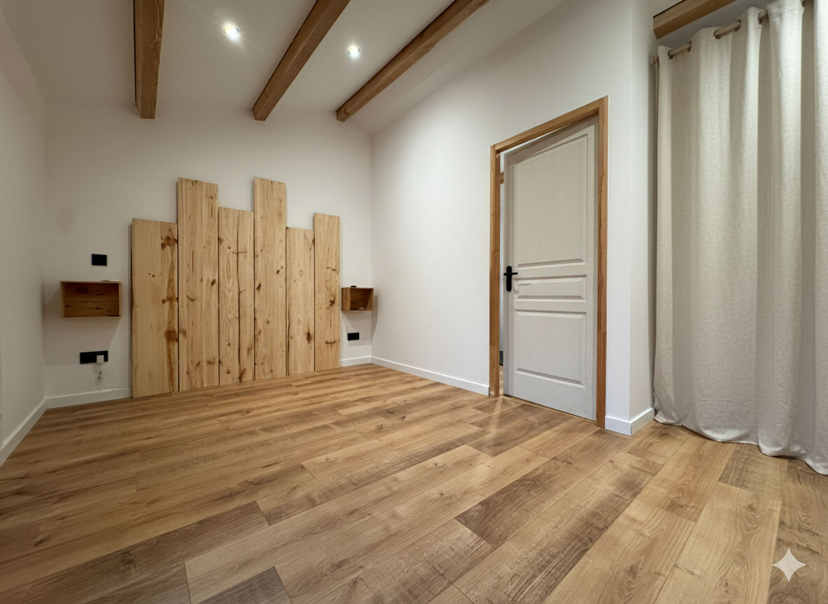 Une chambre avec coin dressing occupe l'étage, accompagnée d'une salle d'eau avec WC.