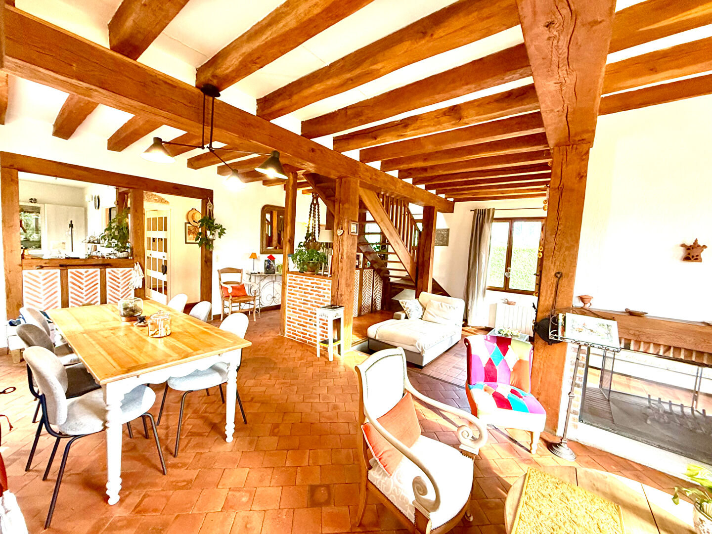 La pièce de Vie, véritable âme de la maison, séduit par ses matériaux Authentiques et Nobles : Tomettes De Baudus, Colombages, Briques en Fougères et une superbe cheminée double entrée, qui invite aux moments de partage et aux soirées au coin du feu. Une ambiance douce, enveloppante, où l'on se sent instantanément chez soi.