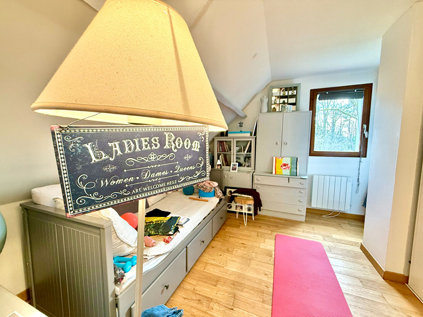 Cette demeure offre quatre chambres, dont une en rez-de-chaussée avec salle d'eau, ainsi que trois belles chambres à l'étage, organisées autour d'une lumineuse mezzanine, aujourd'hui aménagée en bureau.