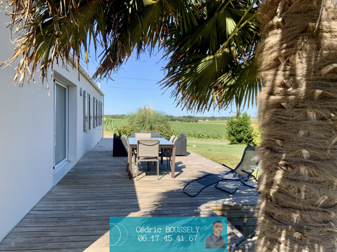 Située à La Jard, à seulement 10 minutes de Pons et 15 minutes de Saintes, cette maison récente offre un cadre de vie au calme