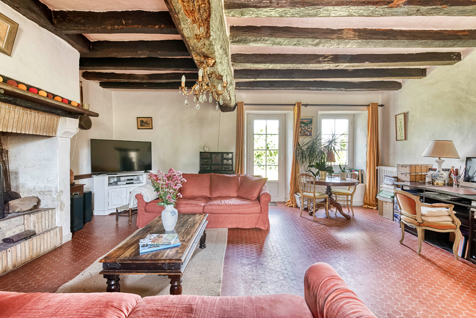 La maison principale est une élégante longère de 186 m² Carrez (197 m² au sol) qui séduit par ses volumes généreux et son atmosphère chaleureuse. L'entrée ouvre sur un vaste salon-séjour traversant de 66 m², baigné de lumière grâce à sa double exposition Est/Ouest, avec une hauteur sous plafond de plus de 5 mètres et un poêle à bois. Un second salon de 35 m² avec cheminée complète les espaces de vie et offre un lieu convivial et cosy. La maison dispose également d'une cuisine indépendante, d'une arrière-cuisine, d'une chambre de plain-pied, d'une salle de bains avec double vasque et de WC séparés avec lave-mains.