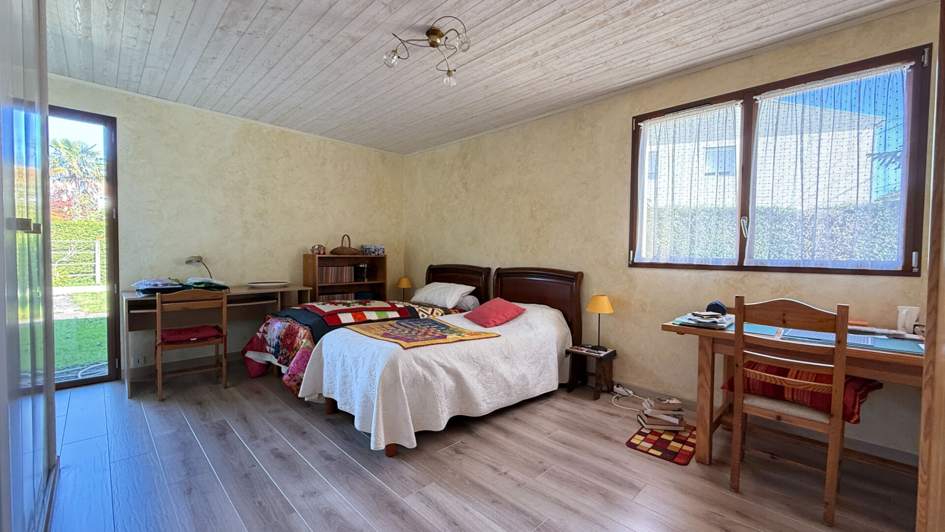La maison dispose de 5 chambres spacieuses, dont certaines au rez-de-chaussée, ainsi que 3 salles d'eau, parfaites pour accueillir une grande famille ou recevoir en toute sérénité.