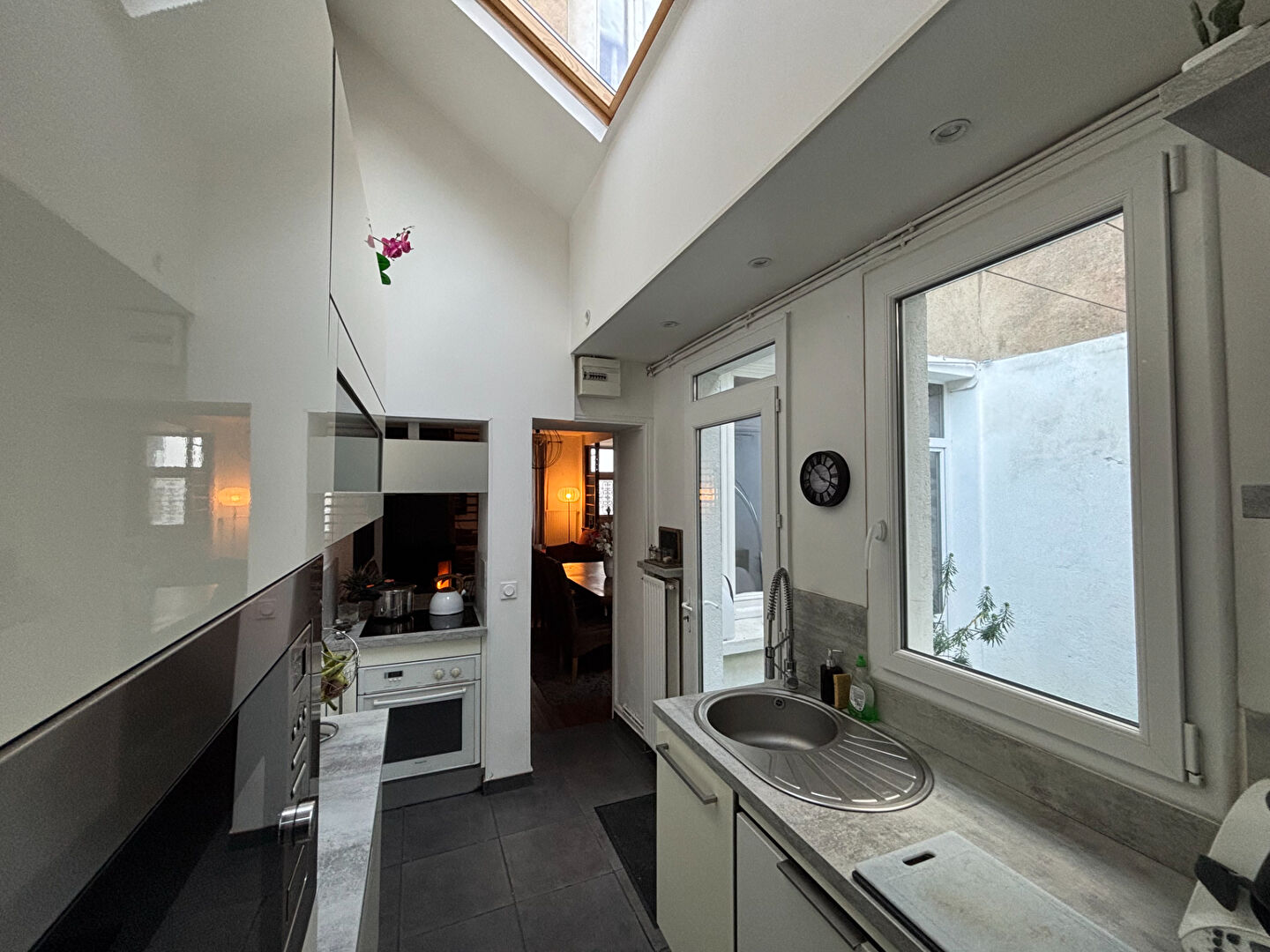 maison avec beaucoup de charme comprenant une belle pièce de vie de plus de 40 m² sur parquet massif, traversant, une cuisine aménagée et équipée, une arrière cuisine, un palier desservant 2 chambres et une salle de bains, une troisième chambre sur le dernier niveau. Jardin entièrement clos et sans vis a vis de 151 m². Commerces et gare SNCF a proximité, proche place Napoléon et parc Simone Veil. Poêle a pellets, belle hauteur sous plafond, cheminée en marbre. A voir rapidement !