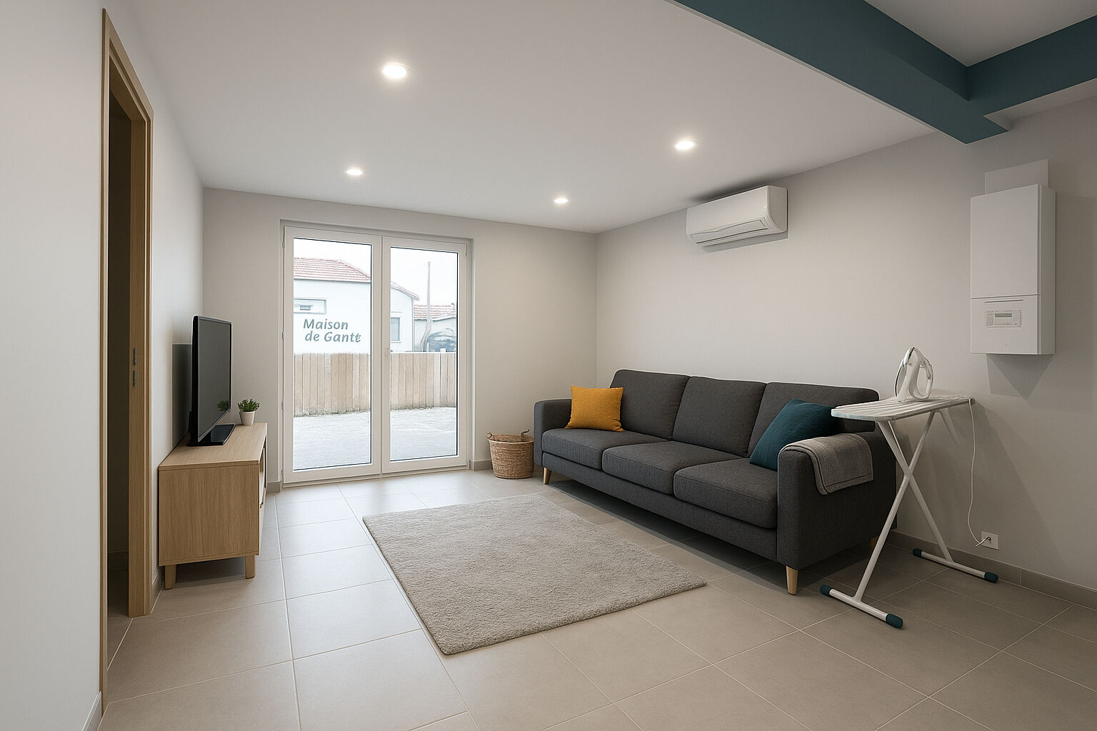 Le rez-de-jardin propose un second logement indépendant, idéal pour accueillir une famille nombreuse, des amis, ou encore générer un revenu locatif.