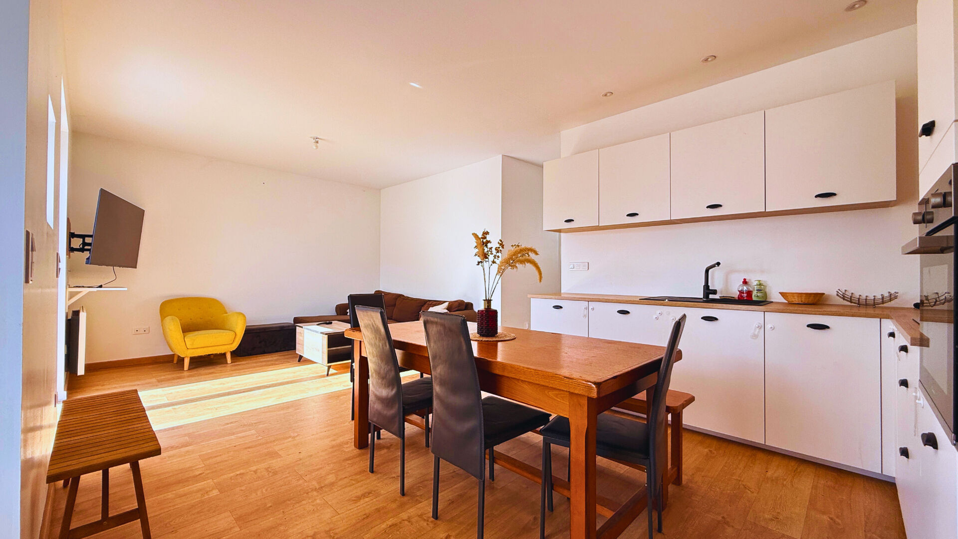 Elle se compose d'une lumineuse pièce de vie avec cuisine aménagée et équipée, idéale pour partager des moments conviviaux, de 2 chambres ainsi que d'une salle de bains.