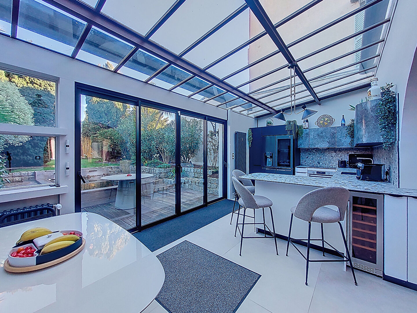 On entre tout d'abord dans une pièce à vivre au grand volume avec ses poutres apparentes et son ambiance décontractée. On découvre ensuite une cuisine lumineuse grâce à sa verrière avec accès sur une terrasse au calme dans un écrin de verdure. Au fond du jardin, vous trouverez une dépendance munie d'une salle d'eau permettant de recevoir amis et famille dans des conditions optimales.