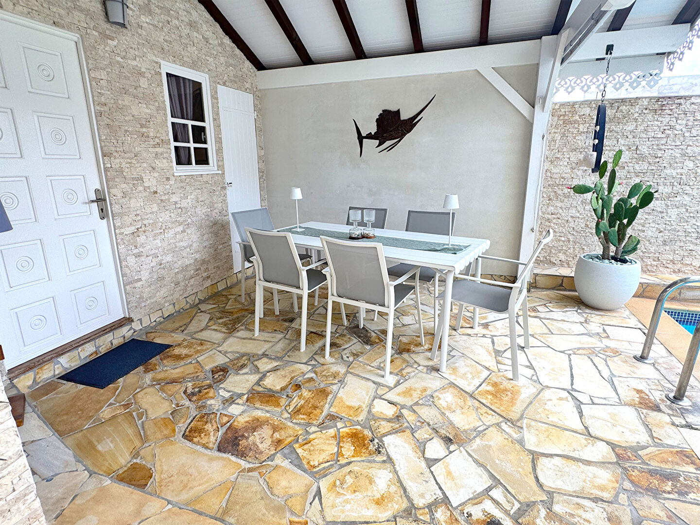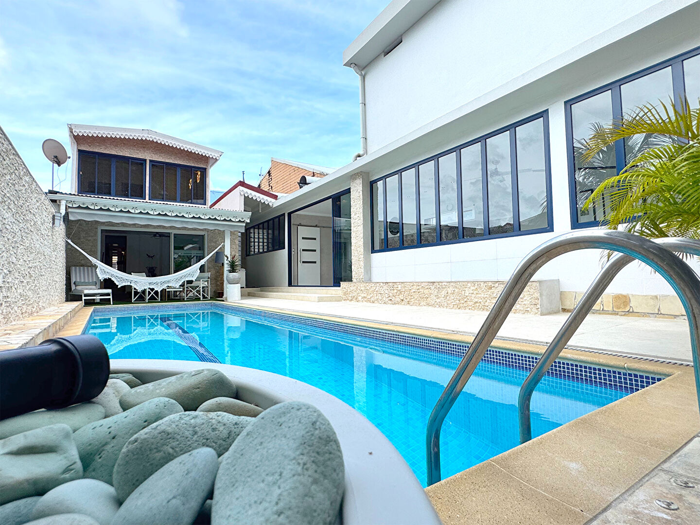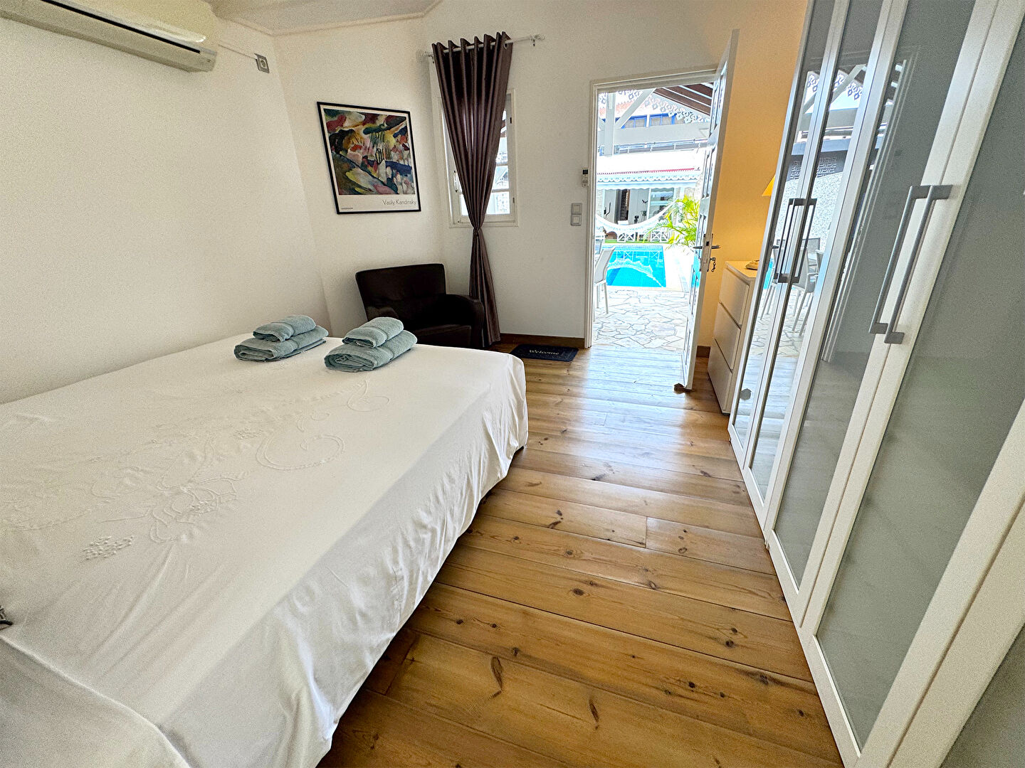 Complètement rénovée en 2017 avec des matériaux d'exception, elle allie confort urbain et sérénité tropicale, à moins de 10 minutes à pied de la plage des Raisiniers.