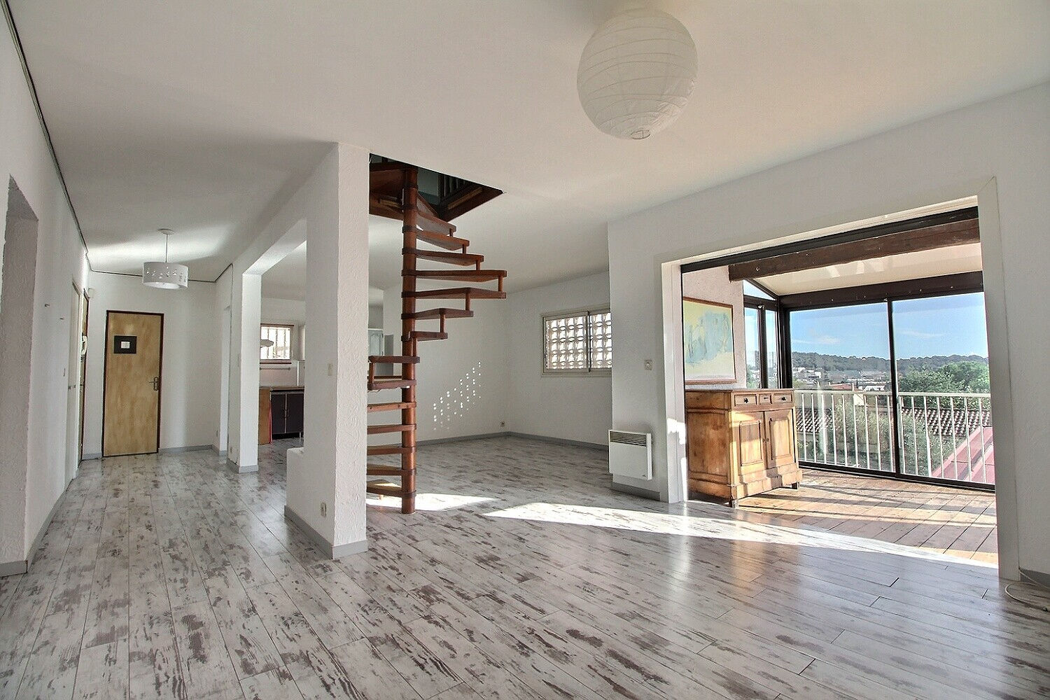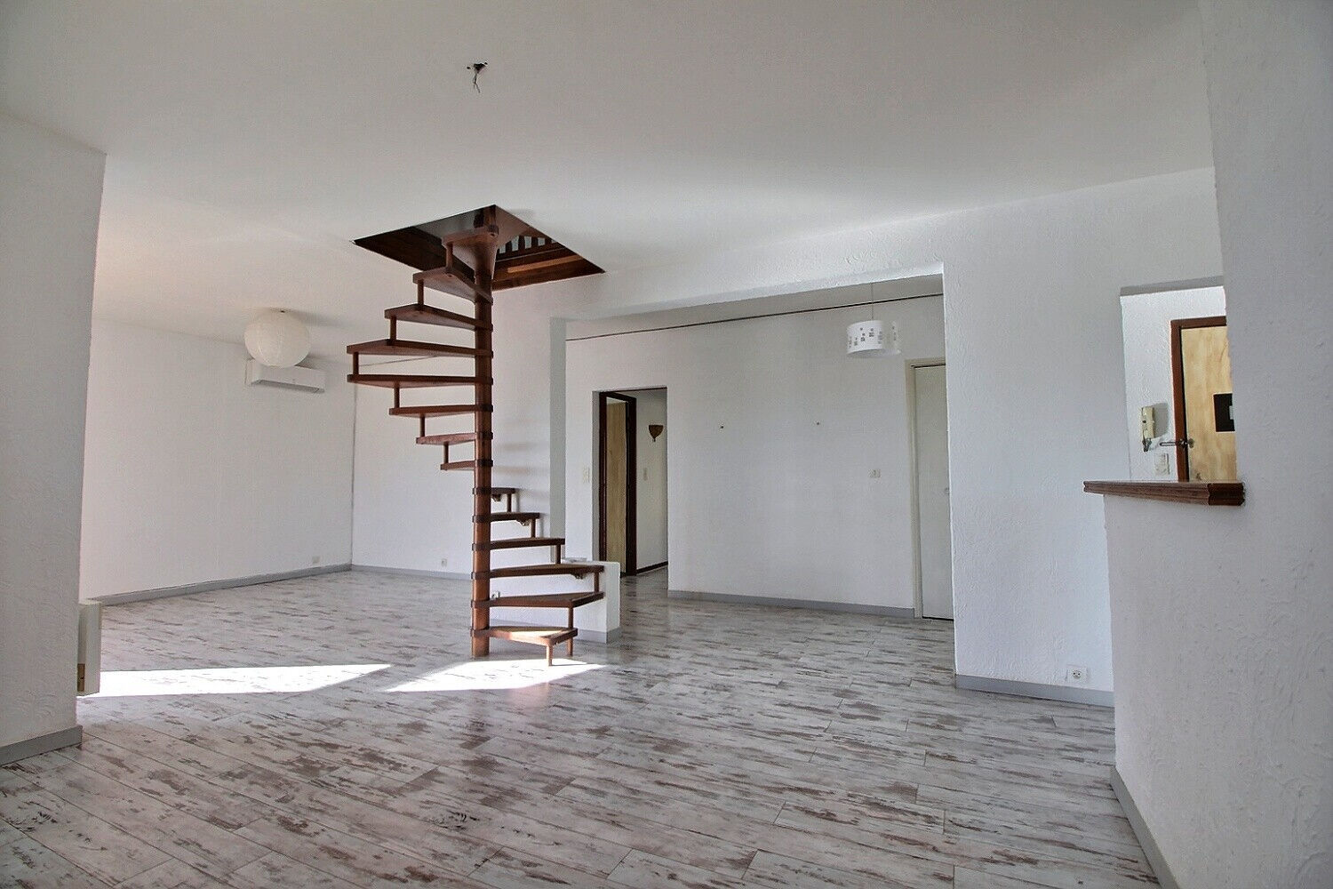 A l'étage un appartement de type 5 rénové avec double séjour, cuisine ouverte et deux terrasses, deux chambres et une salle d'eau. Grande chambre supplémentaire dans les combles.