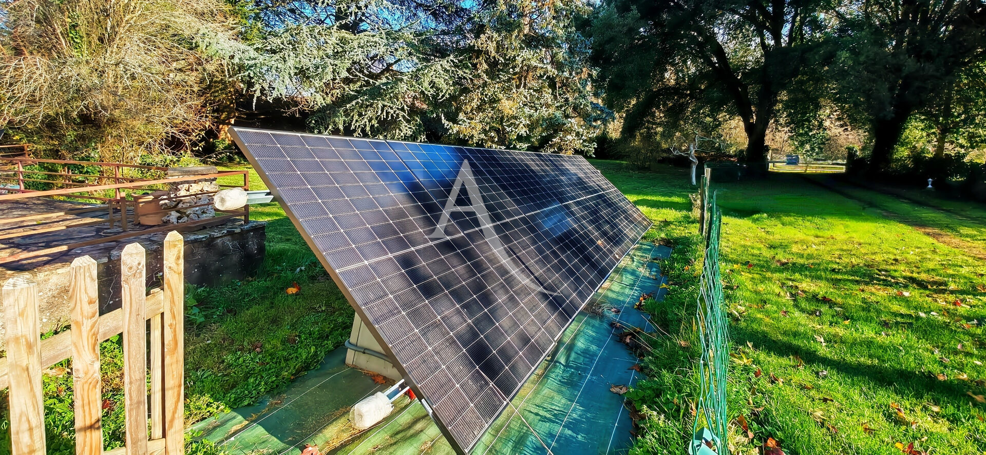 Des panneaux photovoltaïques sont installés sur le terrain (3 KWh) et reliés aux batteries dans le cellier pour stocker et utiliser cet électricité plus tard.