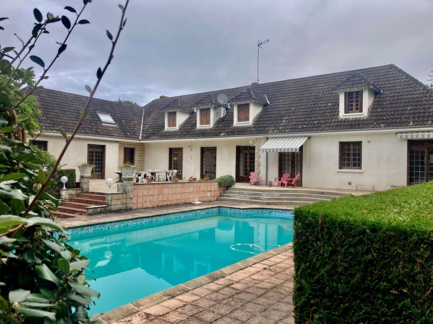 Une piscine chauffée par pompe à chaleur, un terrain de tennis a rénover, deux boxes.