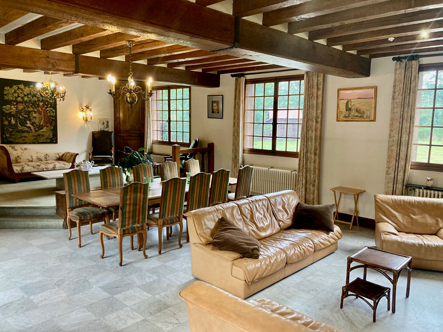 Dans village tous commerces cette propriété vous offre une surface habitable de 390 m² environ, une somptueuse pièce à vivre de 74m², une cuisine aménagée, 6 chambres, plusieurs salles d'eau et salles de bains, deux très grands bureaux.