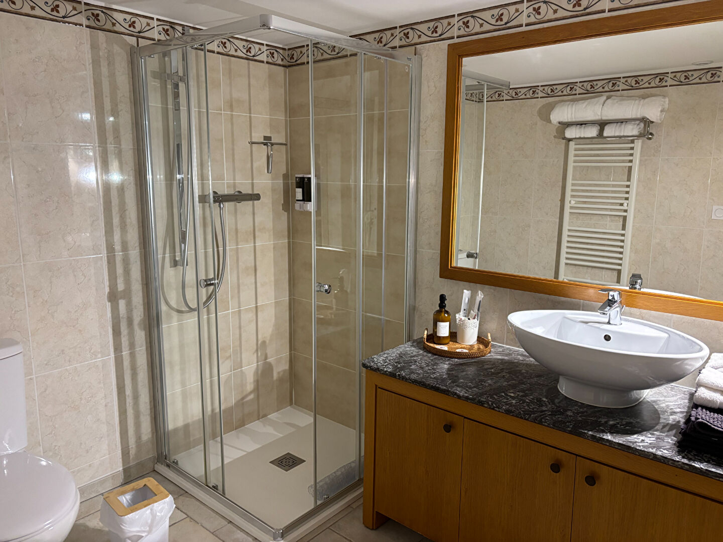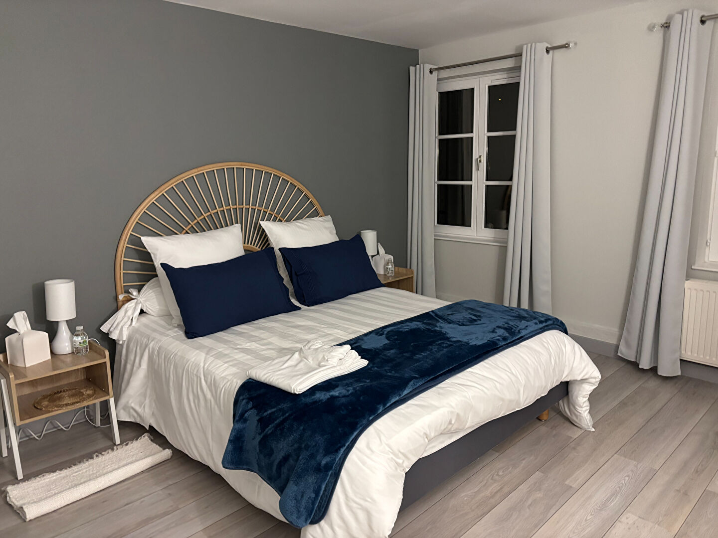 La maison d'amis, chaleureuse et indépendante, propose une suite au rez-de-chaussée avec salle d'eau et WC, ainsi qu'une seconde chambre à l'étage, garantissant confort et intimité pour vos hôtes.