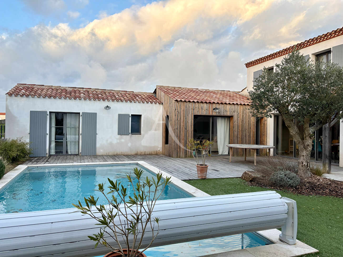 Détendez-vous ensuite vers un salon délimité par une verrière offrant une vue imprenable sur le jardin et la piscine à eau salée chauffée. Une chambre de plain-pied avec dressing et salle d'eau privative pour votre confort.
