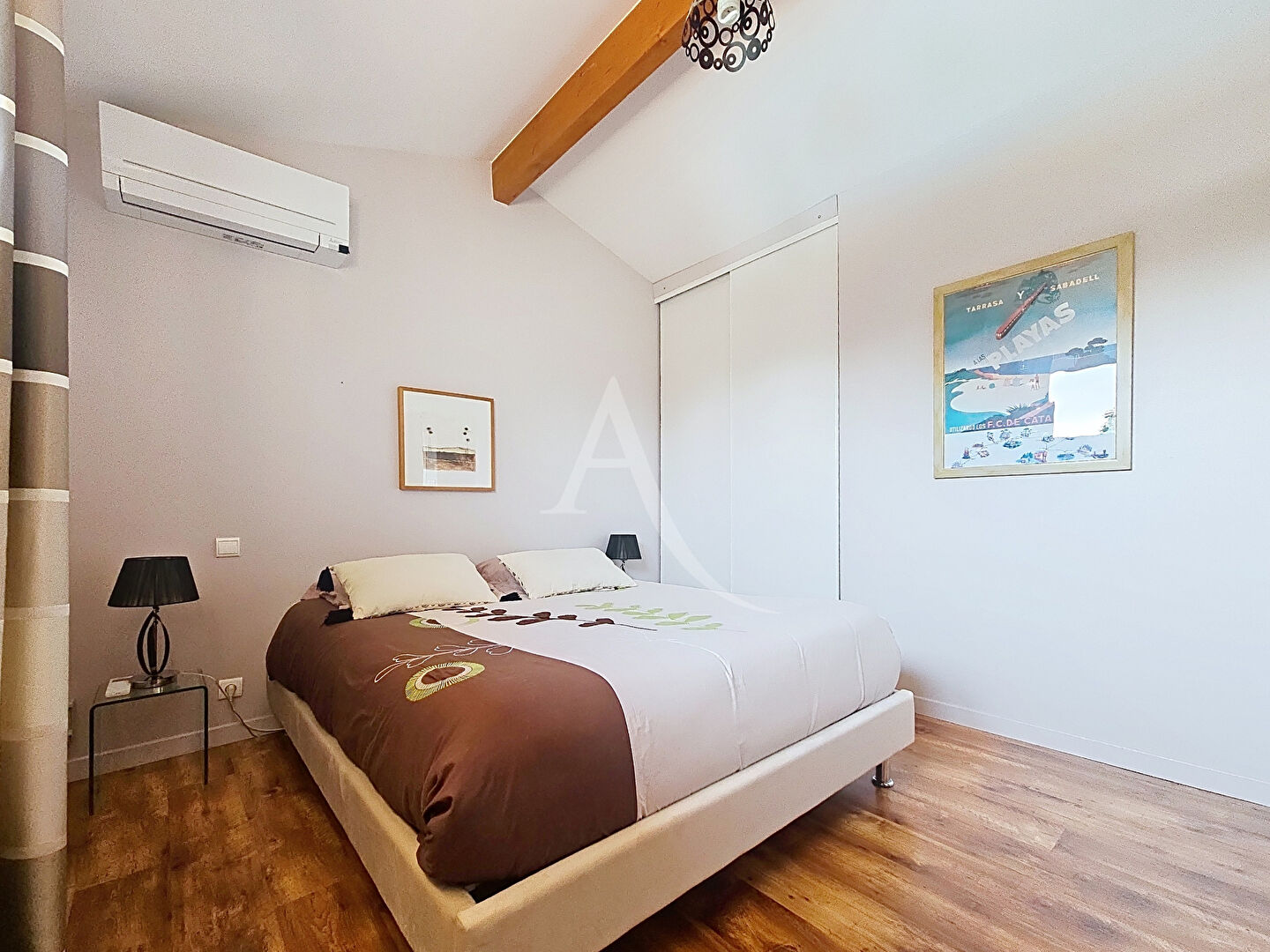 A l'étage, nous trouvons deux chambres de 12 m2, climatisées, avec placard, un espace bureau , une salle d'eau et wc séparé et une salle de jeu de 11m2 qui peut être une cinquième chambre.