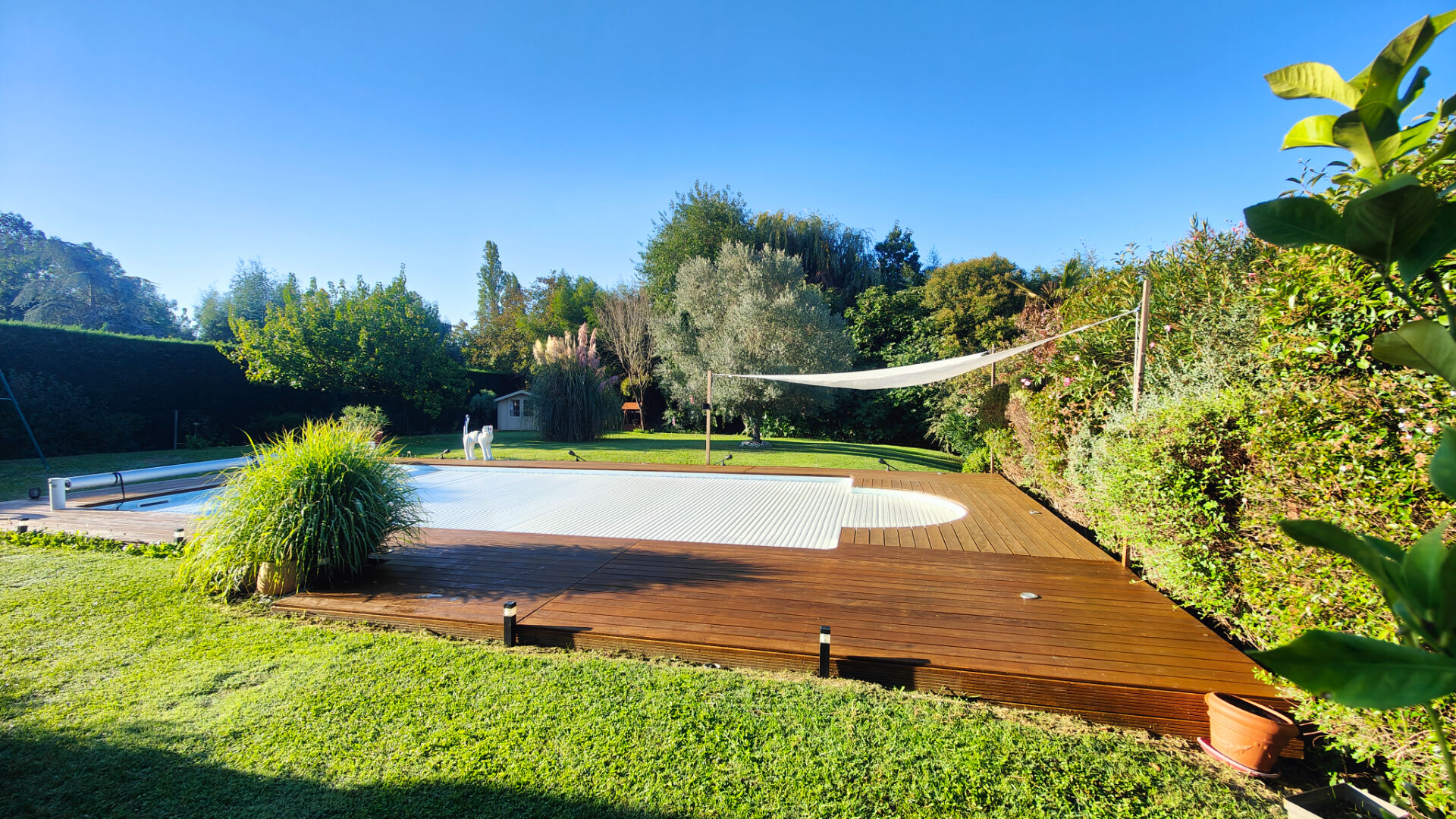 Le terrain de 2000m2 est entièrement aménagé de haies et arbres majeurs, le parc est superbe. La piscine est chauffée, 105m2 de terrasses en ipé, double garage, terrain de pétanque.