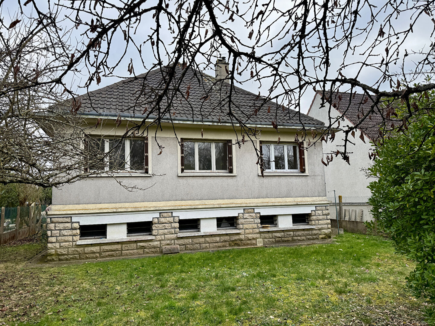 En plus d'un généreux terrain d'environ 490m², elle dispose d'un sous-sol total avec une partie garage de 20m².