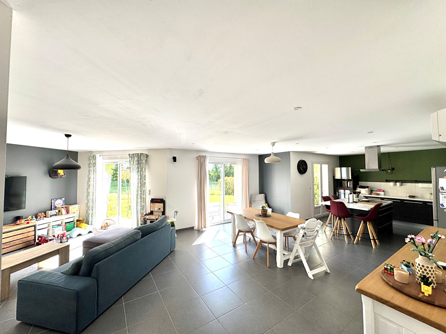 Découvrez cette agréable maison de plain-pied offrant de beaux volumes et une belle luminosité dans un quartier résidentiel très calme. Elle se compose d'une entrée avec un bureau (parfait pour le télétravail), d'une cuisine aménagée/équipée ouverte sur le séjour/salon spacieux et baigné de lumière, idéal pour partager des moments conviviaux en famille ou entre amis. Côté nuit, vous trouverez trois chambres dont une avec un dressing et la salle de bain. Fonctionnelle, la maison dispose également d'une buanderie et d'un garage. Le tout sur un terrain clos avec une agréable vue dégagée sur un champs, offrant calme et cadre de vie privilégié.