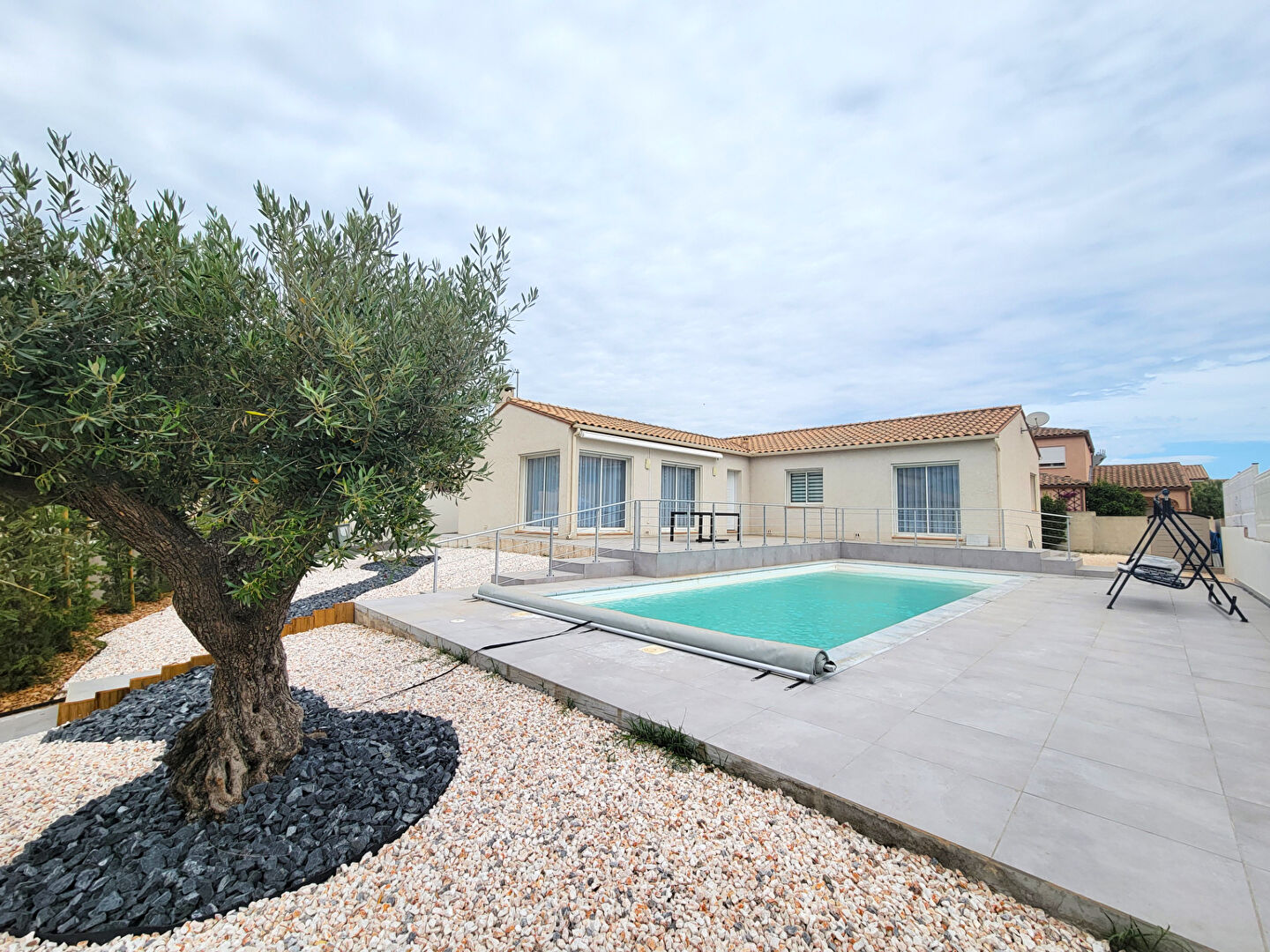Laissez-vous séduire par cette superbe villa de plain-pied, pensée pour offrir un cadre de vie paisible et tout le confort recherché. Implantée sur un terrain de plus de 600 m², elle bénéficie d'une belle piscine de 10 x 4 mètres, idéale pour partager des moments de détente en famille ou entre amis.